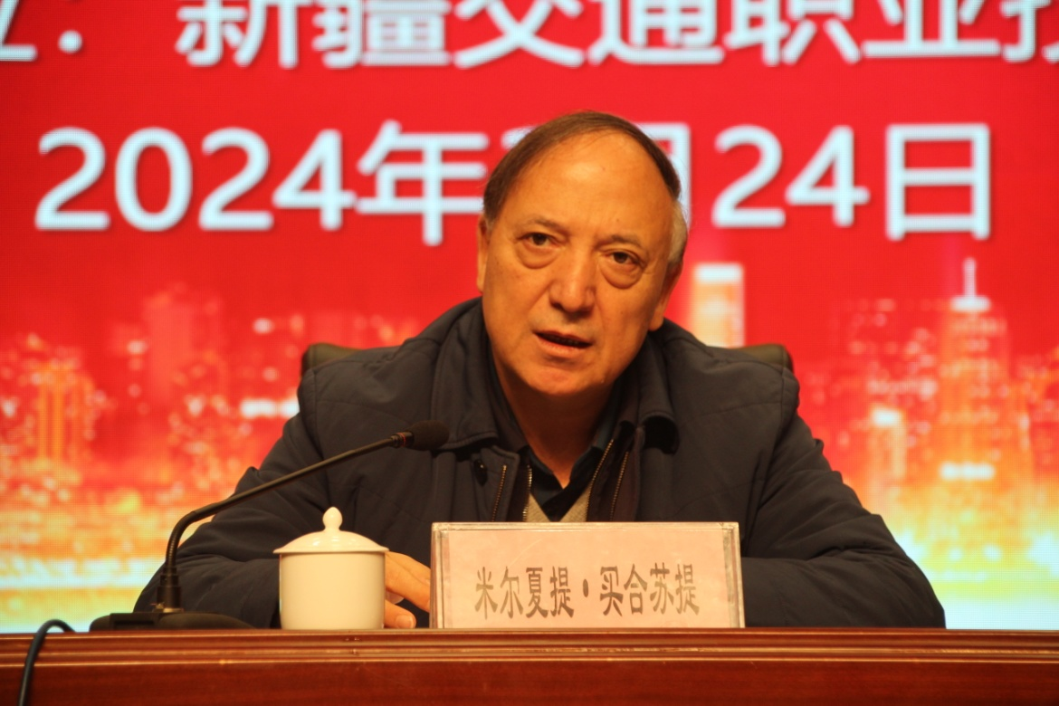 自治区交通建设管理局党委委员、副局长米尔夏提·买合苏提出席开班仪式并讲话,新疆维吾尔自治区交通建设管理局工程建设管理处处长陆军主持开班仪式,新疆交通职业技术学院党委副书记、院长何朴致欢迎词。