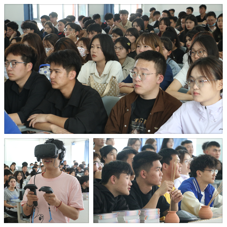 自治区博物馆讲解员以“塔里木盆地游学行”为主线,从轮台、库车等地围绕塔里木盆地环线直至首府乌鲁木齐,讲述了不同地区的文化遗址及出土的重点文物。工作人员从馆藏文物所承载的故事,向同学们呈现新疆出土文物的历史文化,讲座中通过历史知识问答、VR体验,让同学们沉浸式体验研学课堂。