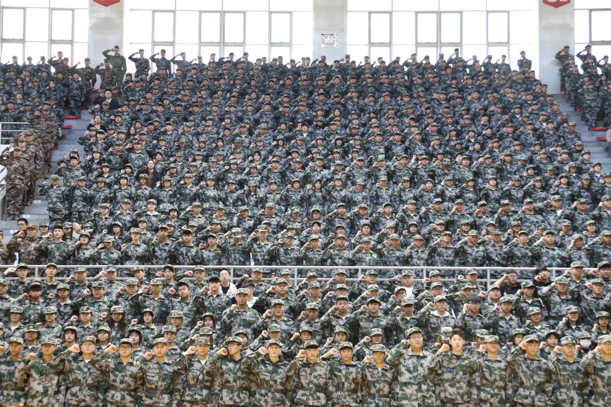 “热爱祖国,关心国防;增强体质,磨练意志;服从命令,听从指挥;尊重教官,刻苦训练……” 军训宣誓铿锵有力,掷地有声,表达了同学们对完成本次军训的信心和决心。
