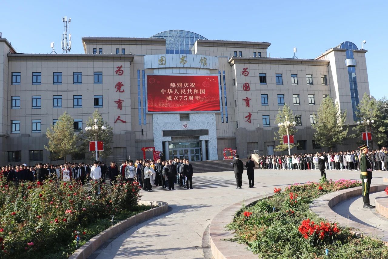 秋高气爽、风和日丽,中华人民共和国迎来75周年华诞,学院内红旗飘扬、鲜花盛开,隆重的升国旗仪式在图书馆前广场举行,各族师生汇聚在此,怀着激动的心情,共同期待庄严时刻的到来。
