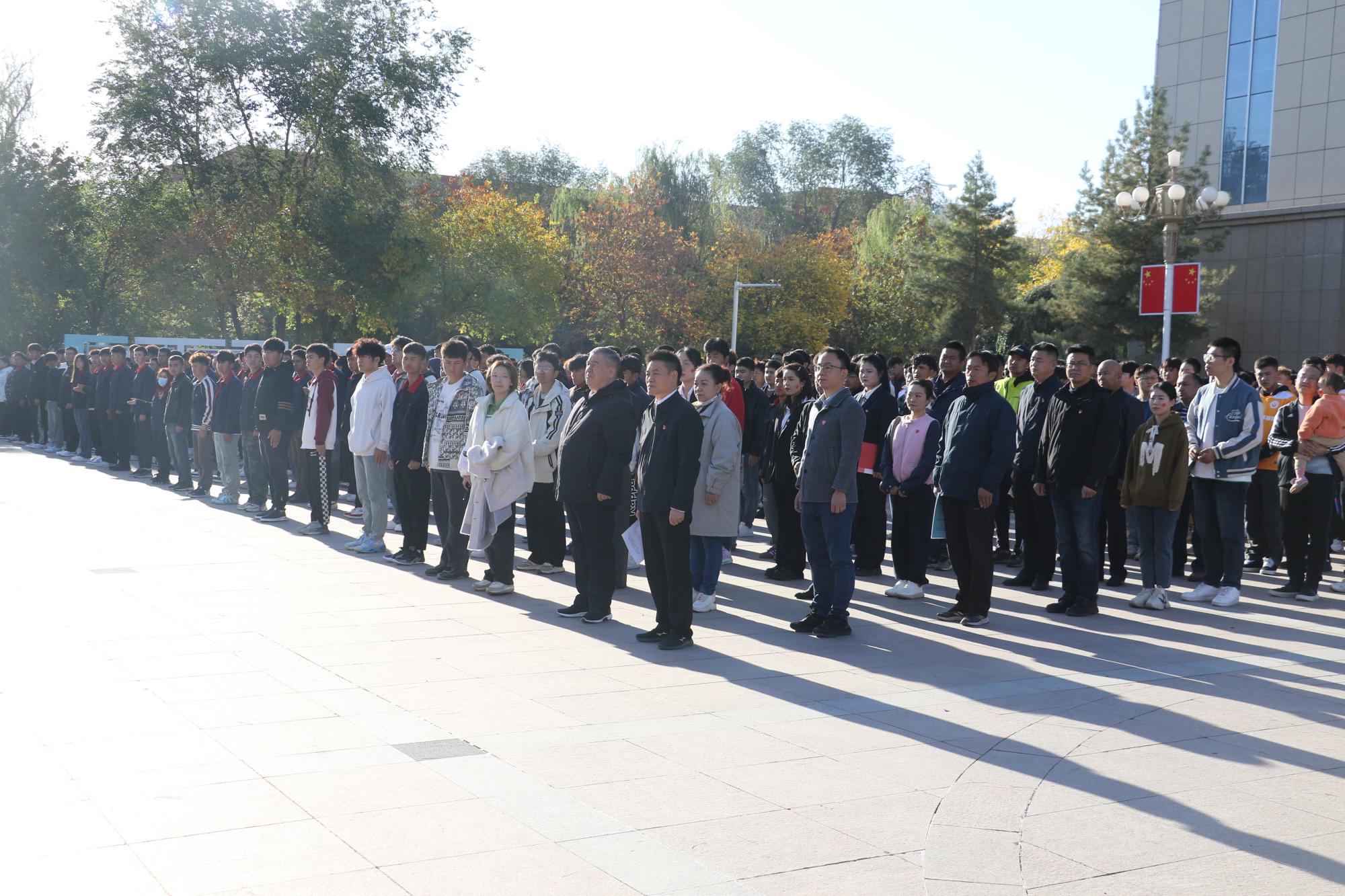 学院在校院领导、教职工代表及留校学生近1300人共同参与了升国旗仪式。