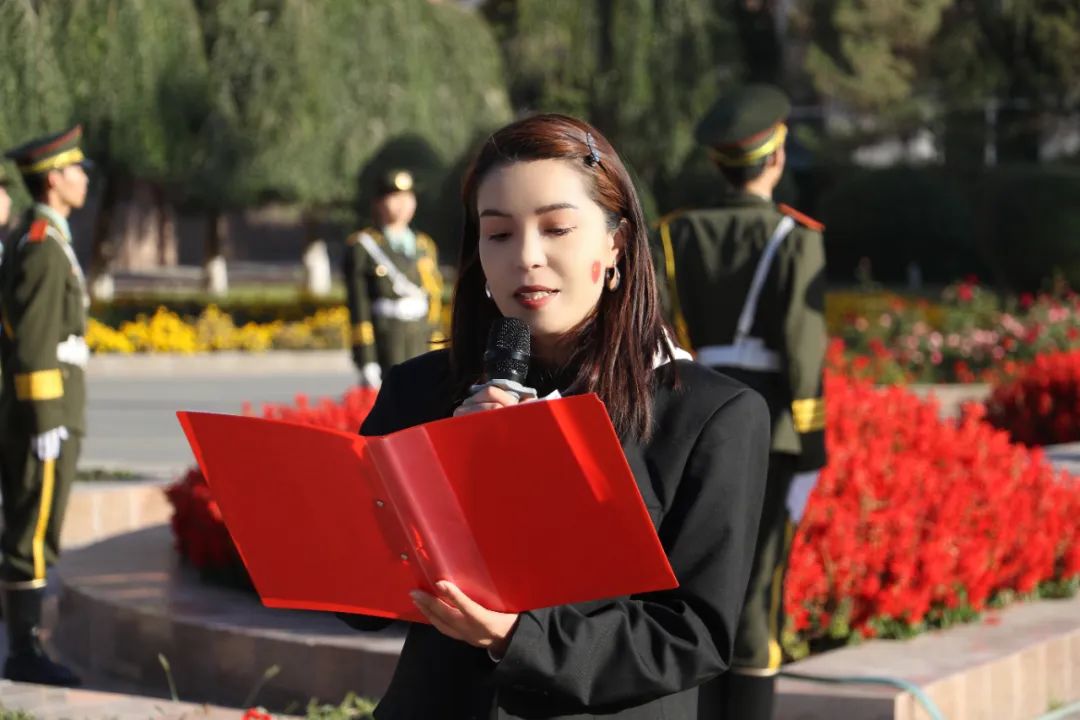 汽车工程学院班主任范柳婷老师、人工智能工程学院分团委书记祖鲁呼玛·米吉提老师作为教师代表国旗下献词,他们以青春之名、许国以行,感召着同学们享受着祖国的繁荣与强大时,更应铭记历史,不忘初心,将个人的理想追求融入到实现中华民族伟大复兴的中国梦之中。
