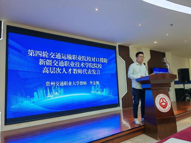李金翔博士的发言,源于自己援疆期间最真实的感受。2024年4月,来自贵州交通职业大学路桥工程系的李金翔,带着满腔热情和丰富的教学经验,跨越千山万水,开始了对新疆交通职业技术学院的帮扶援助工作,并通过一次次教育的交流和智慧的碰撞,结出累累硕果。