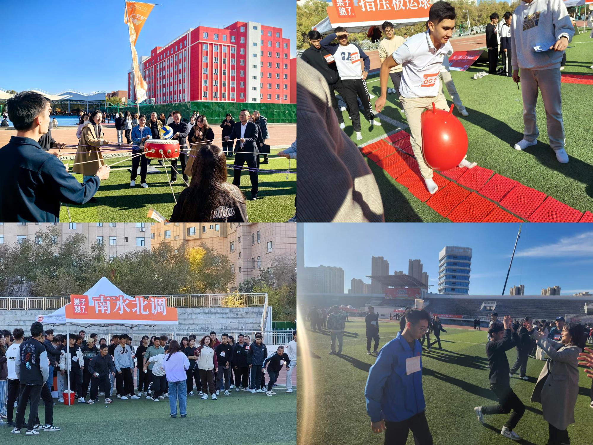 此次趣味运动会共设置了10个富有创意和趣味性的比赛项目,如五人四足、同心击鼓、南水北调等。比赛现场,参赛师生们个个精神抖擞,全力以赴。在五人四足项目中,师生共同组队,喊着口号手挽手迈向终点;南水北调项目师生用“管道”传递水,大家全神贯注、相互提醒,顺利完成“引水”任务。这些项目充分展现了大家团结一心、同心协作的精神风貌,让广大师生在欢乐氛围中感受到了运动的快乐和团队合作的魅力。
