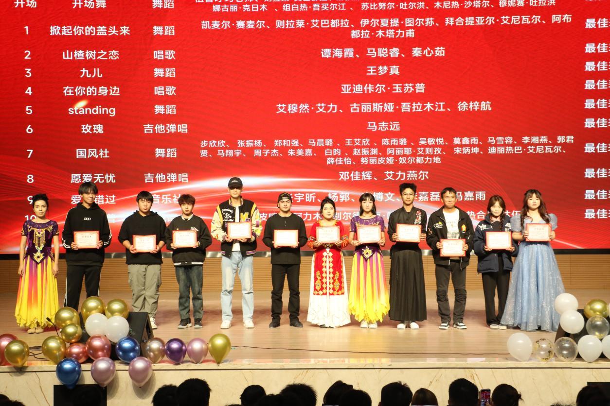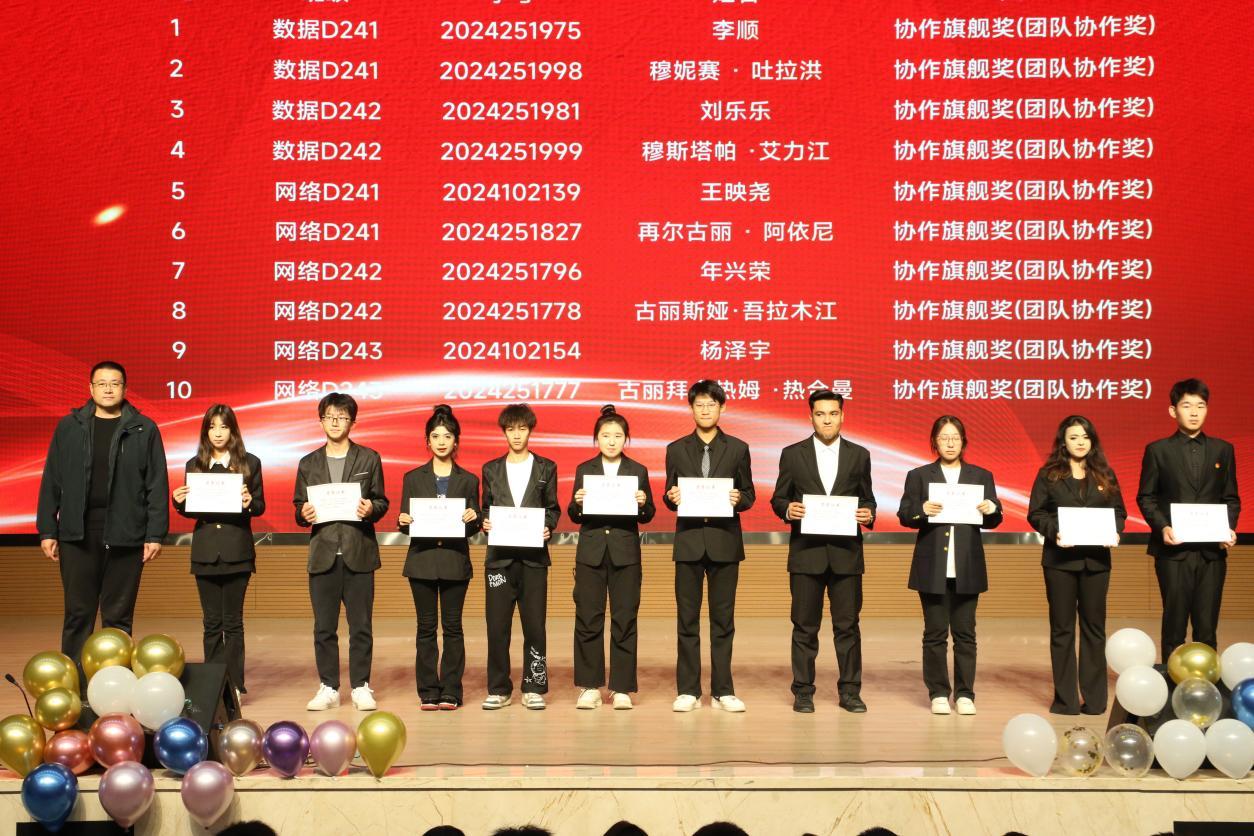 晚会的另一大亮点则是“闪耀星芒、智启新程”表彰环节。学院对过去一学年在学术研究、学科竞赛、社会实践、民族团结等方面表现突出的优秀师生进行了隆重表彰。获奖师生们面带笑容、步伐坚定地走上舞台接受表彰,台下响起了雷鸣般的掌声,这掌声不仅是对他们的祝贺,更是对他们辛勤付出与卓越成就的认可与赞扬。