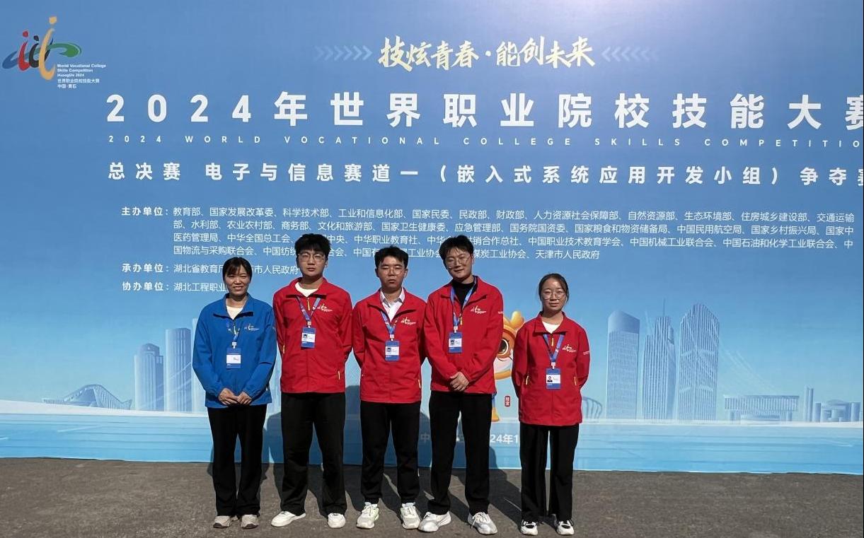 近日,备受瞩目的2024年世界职业院校技能大赛总决赛争夺赛电子与信息赛道一(嵌入式系统应用开发小组)在湖北工程职业技术学院圆满落下帷幕。本次大赛吸引了全国32个省区市的61所职业院校参加。学院时凯、刘泽宇、原锌铭、严莹四名同学组队代表自治区参赛,经过紧张激烈的角逐,最终我院参赛队凭借扎实的专业知识、出色的实践能力和团队协作精神,喜获铜奖。