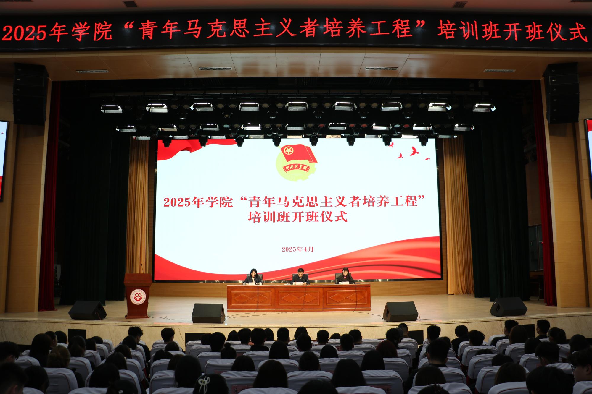 为深入学习贯彻党的二十大和二十届二中、三中全会精神,贯彻落实习近平总书记关于青年工作的重要思想,引领大学生成为坚定的青年马克思主义者。4月21日下午,在产教融合楼大礼堂举行2025年度学院“青年马克思主义者培养工程”培训开班仪式。学院党委书记王瀚,党委委员、副院长李大严出席会议。