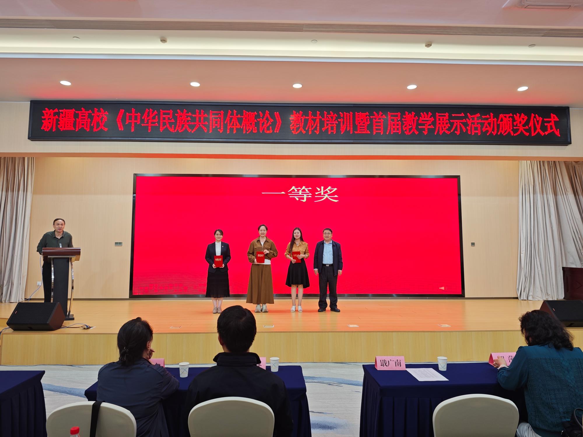 5月11日,由自治区党委教育工委、自治区教育厅、自治区民委、兵团教育局主办的新疆高校首届《中华民族共同体概论》课程教学展示活动在新疆财经大学举行。来自全疆高校的60名优秀教师聚焦国家统编教材,展开了一场高水平的现场教学竞技,最终评选出普通高校组一等奖2名、高职院校组一等奖2名。学院马克思主义学院教师赛尤拉·肖开提代表学院参赛,以优异表现斩获高职院校组一等奖,彰显了学院思政教学的卓越实力。