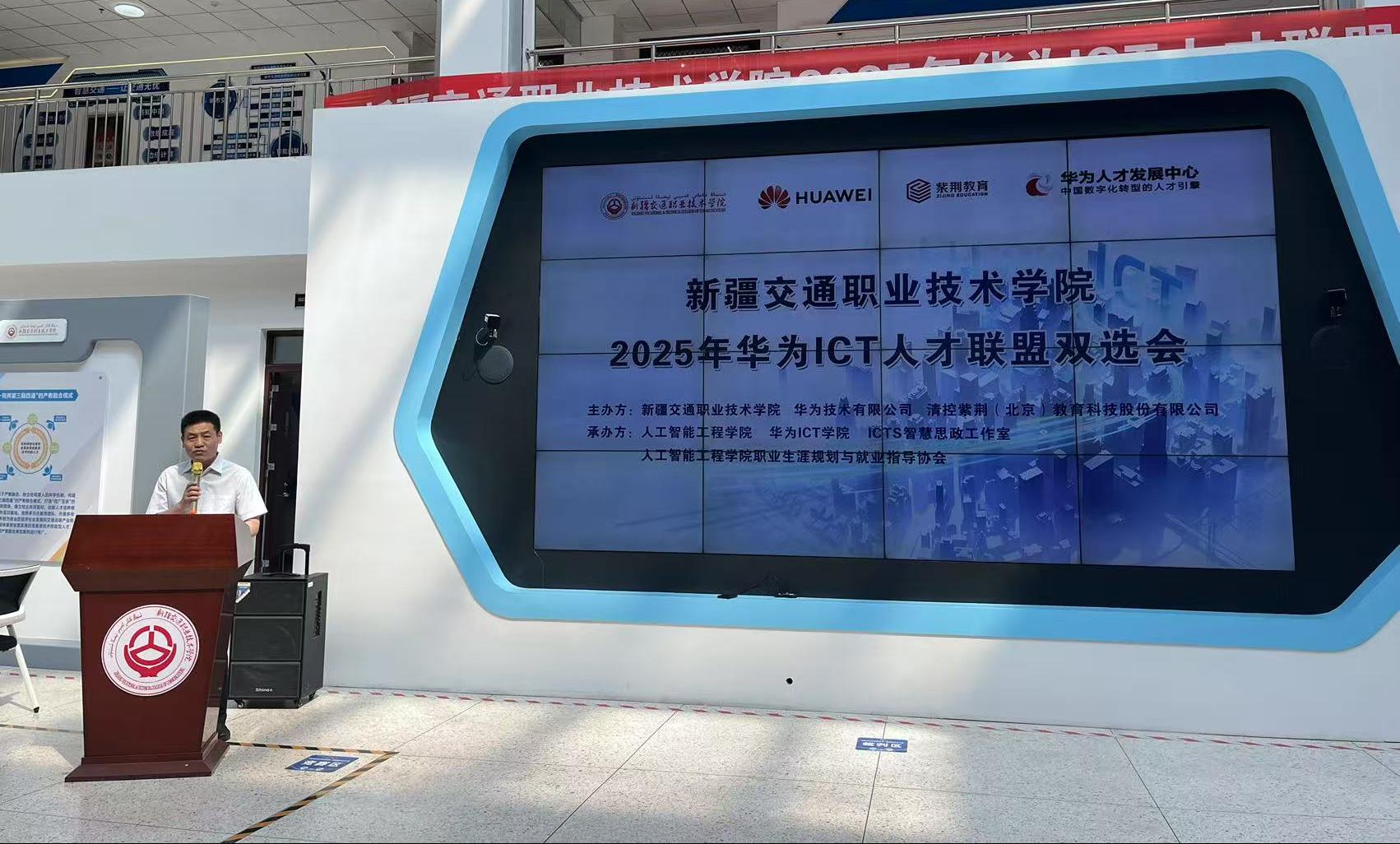 5月14日,学院2025年华为ICT人才联盟双选会圆满落幕,此次活动由新疆交通职业技术学院、华为技术有限公司、清控紫荆(北京)教育科技股份有限公司联合主办,学院党委书记王瀚、华为技术有限公司新疆政企业务部副总经理范朝军出席大会并讲话。