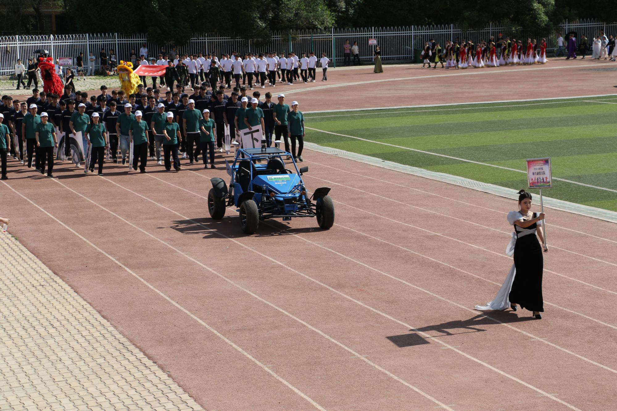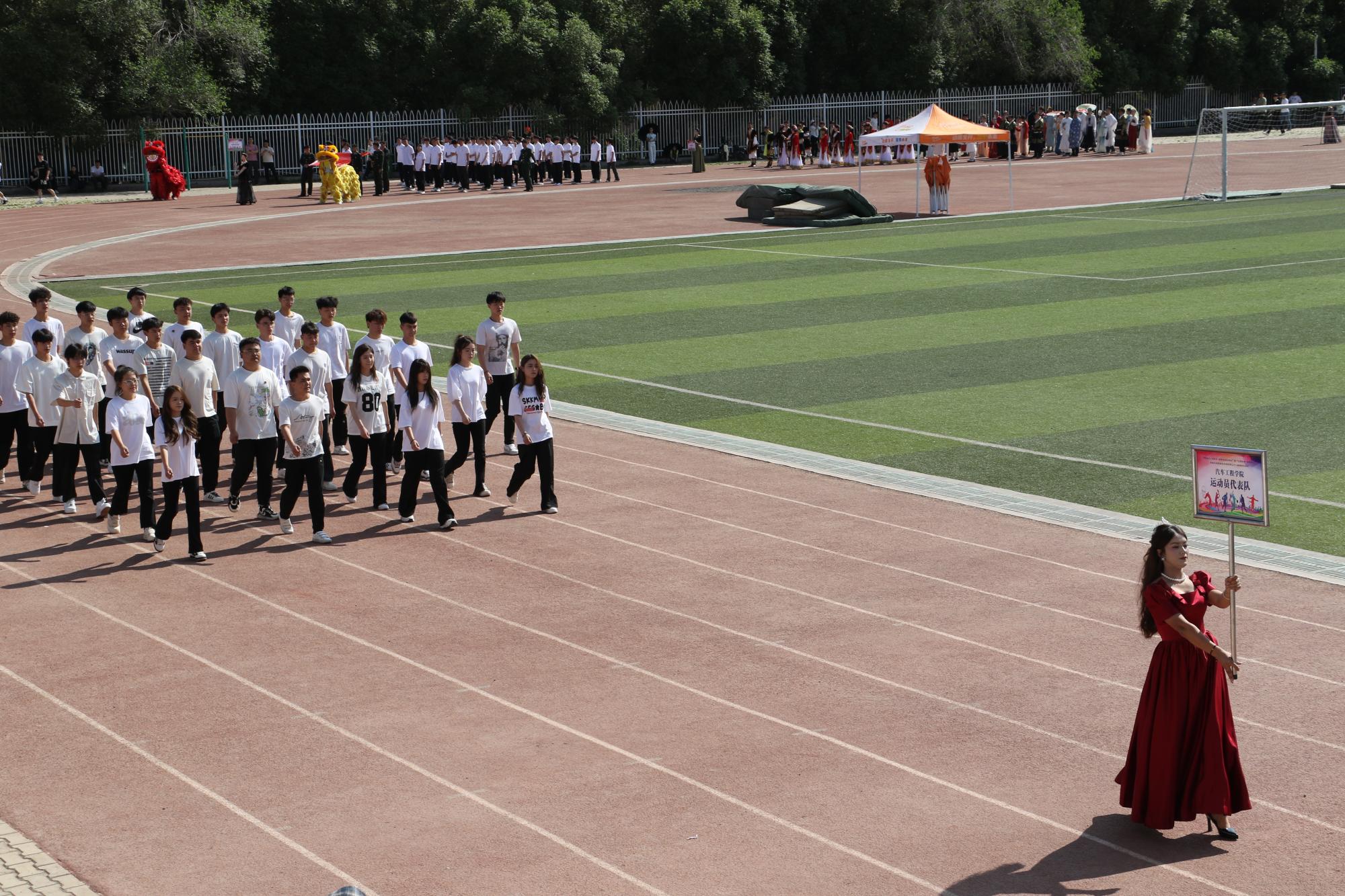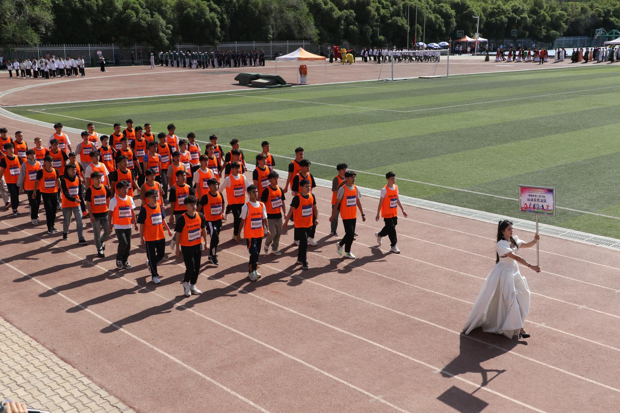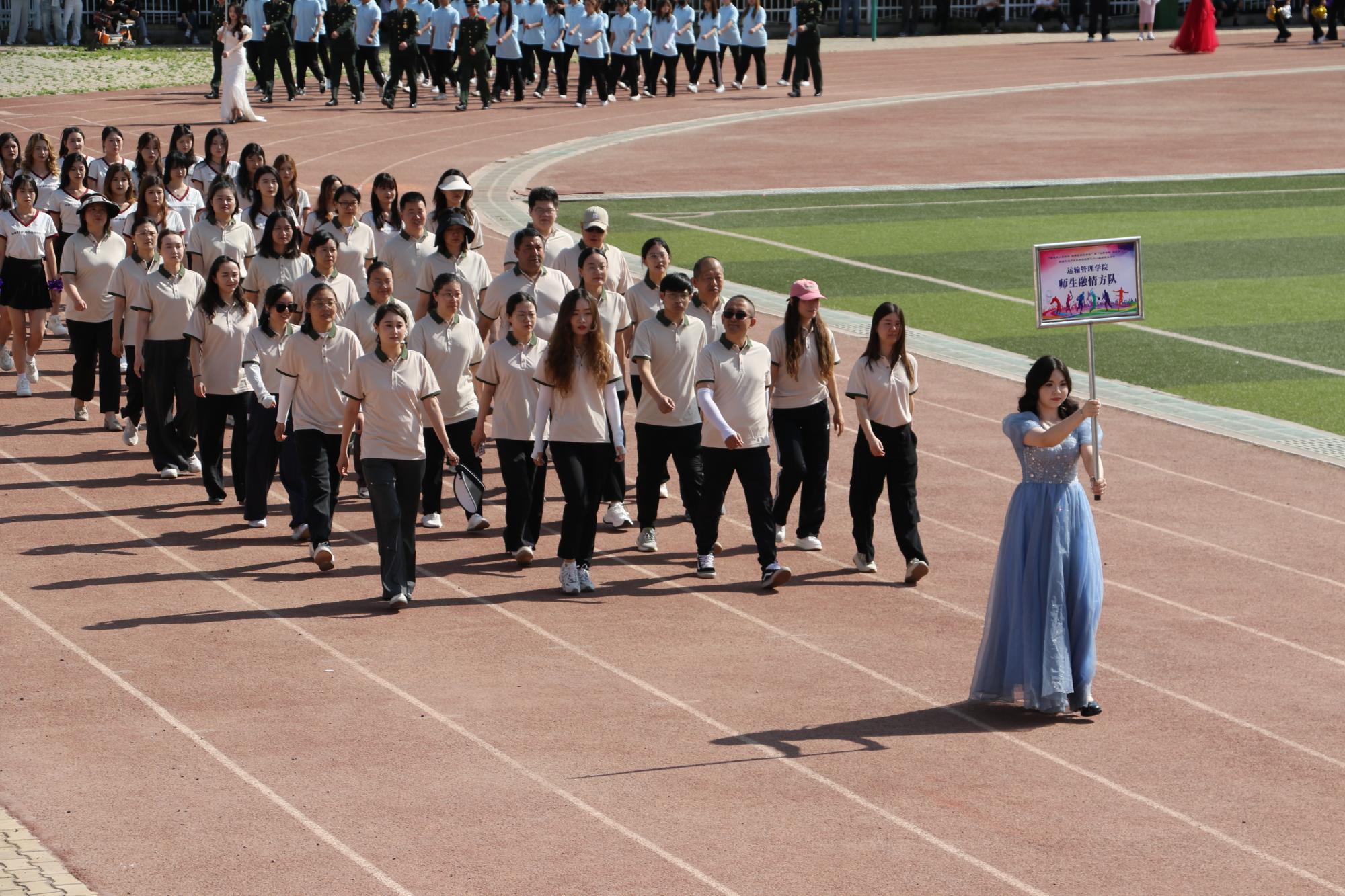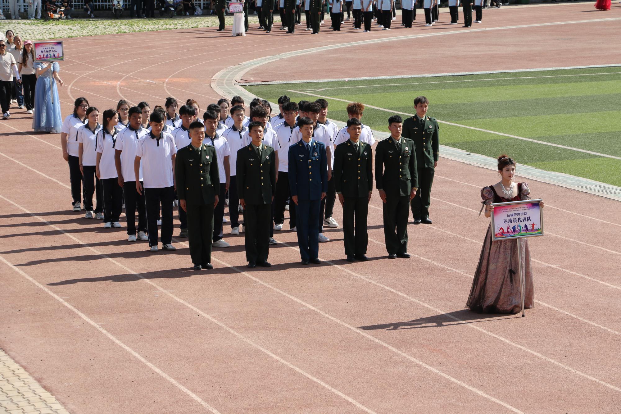 开幕式在激昂澎湃的乐曲声中正式拉开帷幕。首先入场的是国旗队和院旗队,他们步伐坚定、目光如炬,护卫着鲜艳的旗帜稳步前行,尽显庄重与威严。随后,各代表队依次入场,他们迈着整齐划一的步伐,精神抖擞、朝气蓬勃,充分展现出交院学子积极向上的青春风采和勇往直前的昂扬斗志。各二级学院运动员及师生融情方队更是别出心裁,将学院的办学特色和专业风采展现得淋漓尽致,引得现场观众阵阵喝彩。