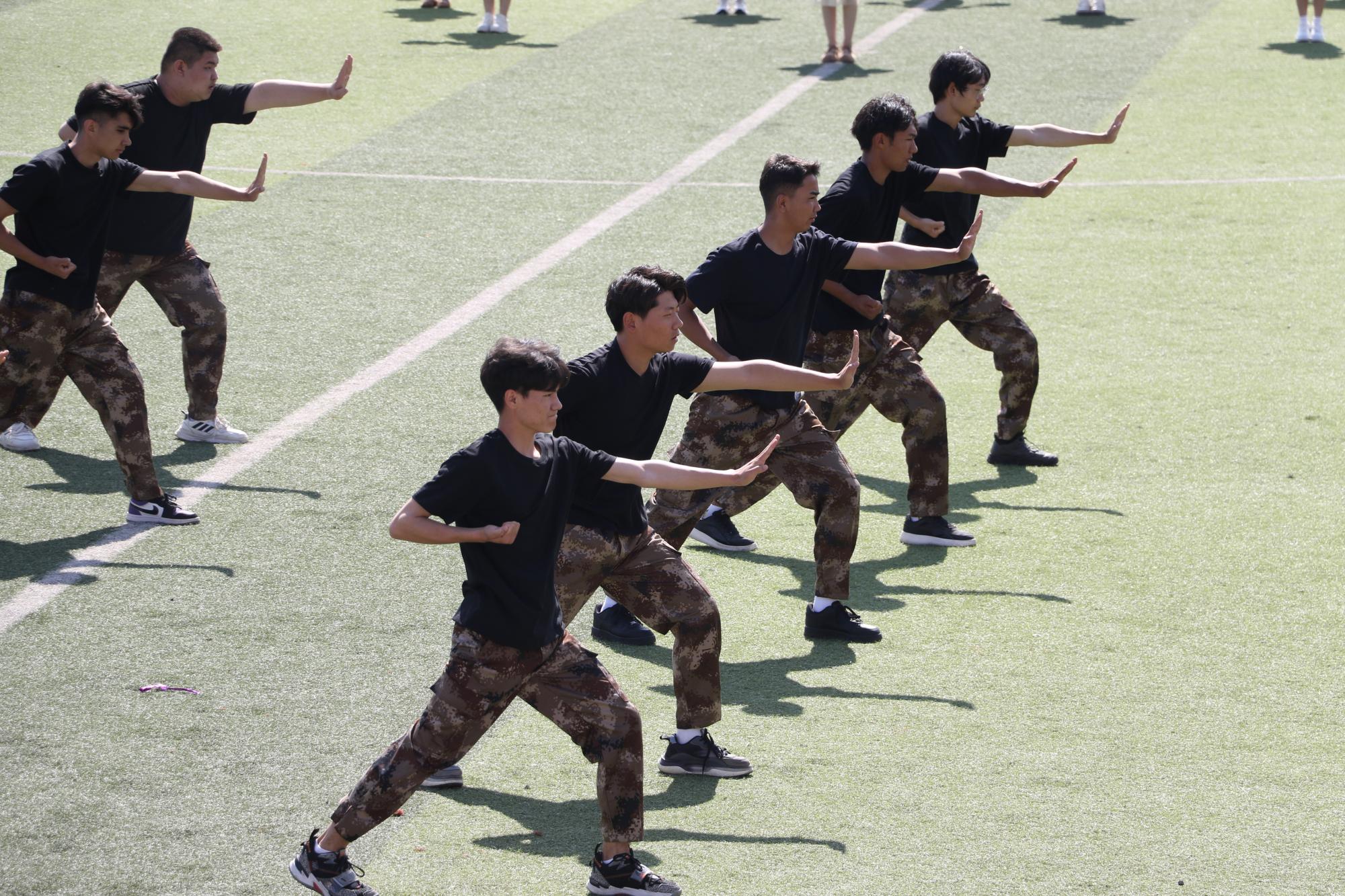 精彩的团体操方阵表演闪亮登场。音乐在跳动,青春在飞扬,同学们用灵动的舞姿与饱满的热情,为运动会献上绚丽的开场华章。他们用汗水诠释着团队协作的力量,用笑容传递着对未来的信心,用舒展的肢体语言和整齐的动作,诠释着新时代大学生对健康体魄的追求与青春宣言,展现了学院师生良好的精神风貌,赢得了现场观众的阵阵掌声!