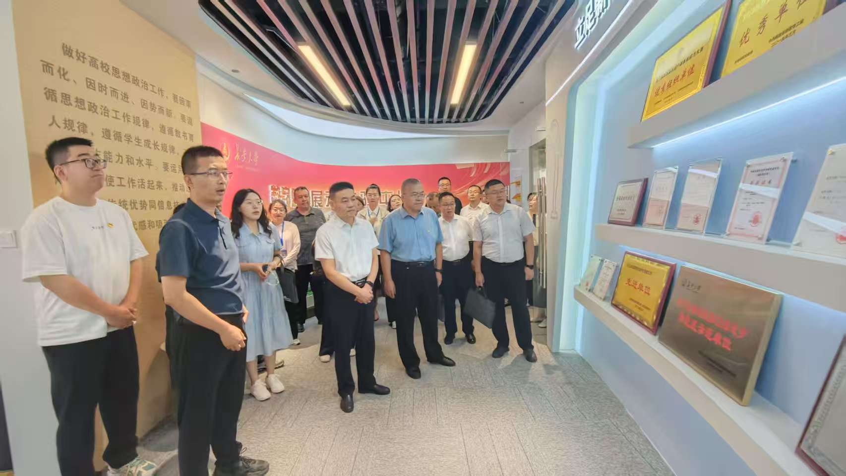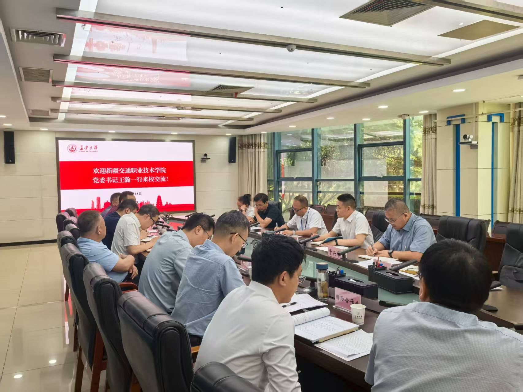 开班首日下午,王瀚带领部分党政干部与长安大学党委常委、副校长陈建勋一行在长安大学会议中心进行交流座谈。双方围绕专业建设与人才培养、科学研究与社会服务、师资队伍建设及国际交流与合作等主题展开了深入交流,并就联合开展课题申报、高层次人才培养、教师访学交流、人才招聘培训以及国际交流合作等方面达成了多项合作意向,为未来两校在更广领域、更深层次的务实合作奠定了坚实基础。会后,在长安大学的周密组织与热情接待下,全体学员分批次与学校各对口部门展开了深入细致的对接交流。期间,学员们还共同参观了长安大学数字思政展示体验中心、道路加速加载实验室等系列荣誉成果展示区及标志性学术设施,通过实地探访与亲身体验,切实感受到了长安大学蓬勃的创新活力与深厚的学术积淀,进一步增进了对长安大学创新精神和文化底蕴的了解与认同。