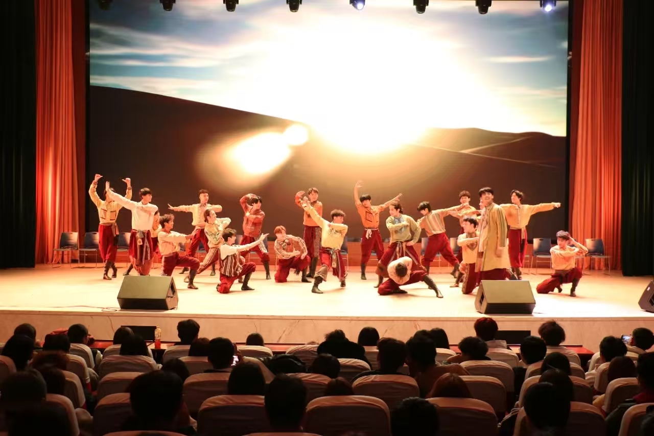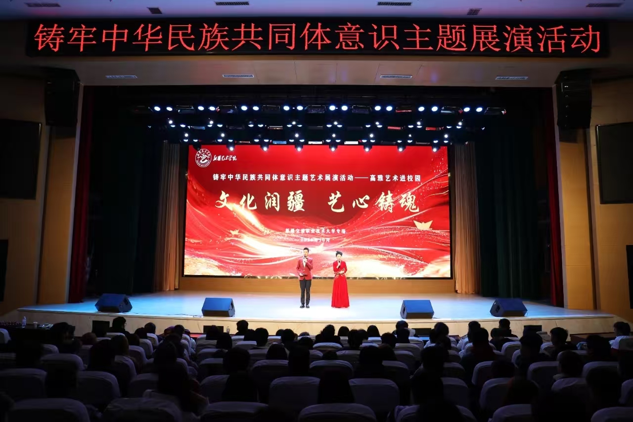 为庆祝新疆维吾尔自治区成立70周年,深入实施“文化润疆”工程,10月20日晚,由新疆艺术学院师生倾情呈现的“文化润疆·艺心铸魂”高雅艺术进校园专场演出在我校举行。校领导与1600余名师生代表共同观看了演出,在一场跨越山海、融汇古今的艺术盛宴中,深刻感受了中华文化的博大精深与新疆各族儿女团结奋进的时代强音。