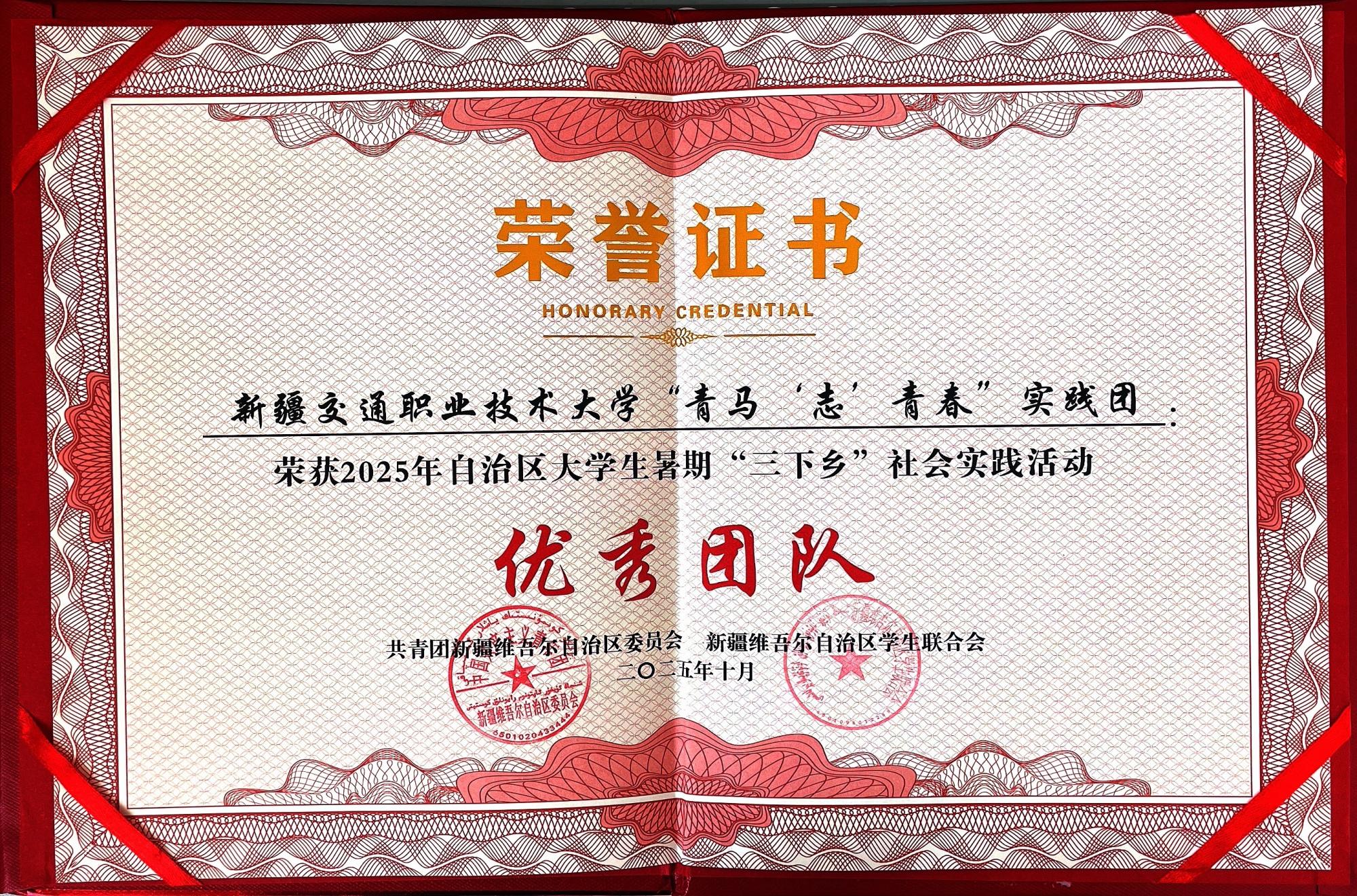10月29日,“青春中国式现代化挺膺担当”2025年自治区大学生暑期“三下乡”社会实践活动总结分享会在新疆财经大学举办。由校团委指导的青马“志”青春实践团荣获2025年自治区大学生暑期“三下乡”社会实践活动“优秀团队”。