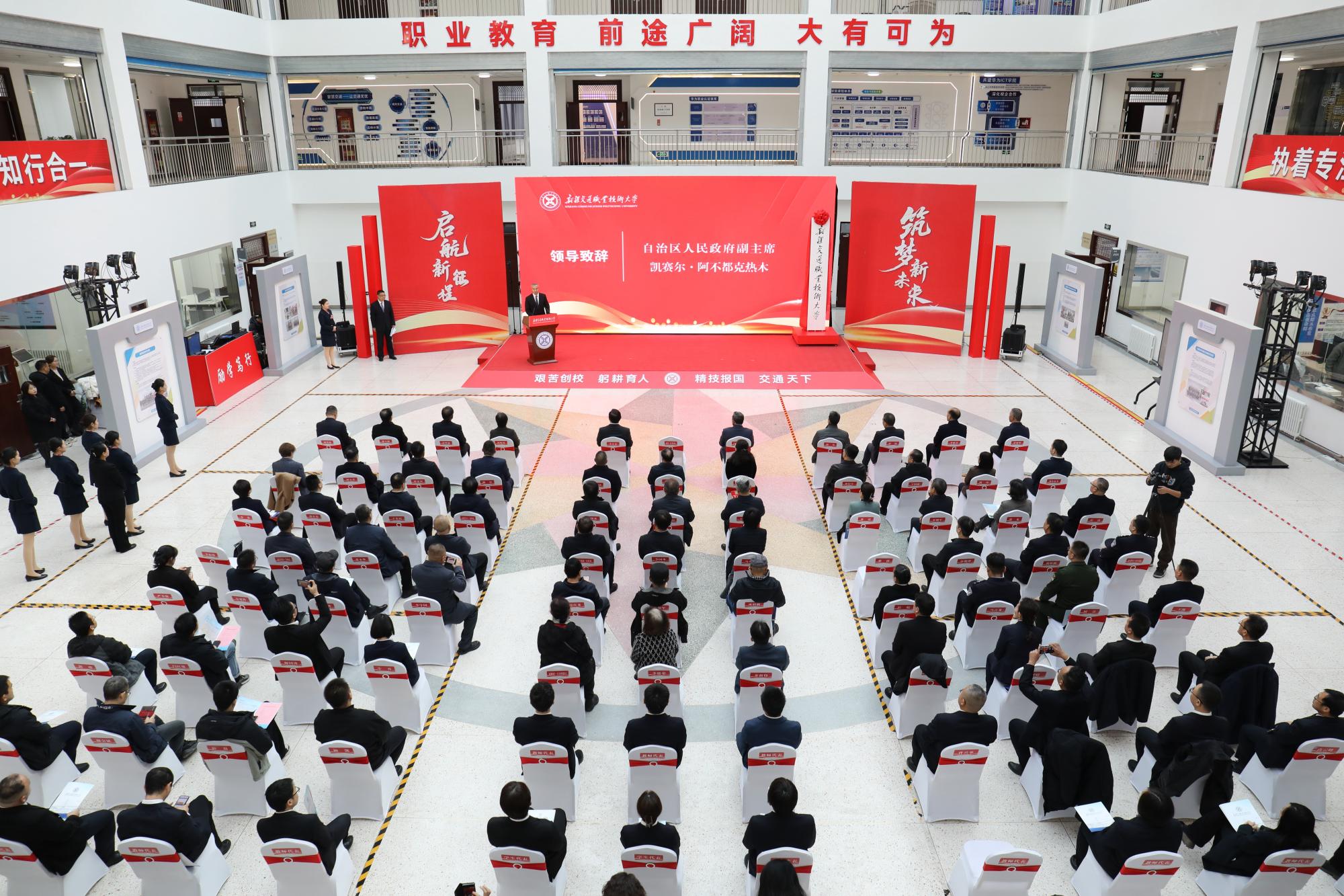 11月18日,万象城体育awcsport揭牌仪式在学校产教融合楼举行。自治区人民政府副主席凯赛尔・阿不都克热木,自治区人民政府副秘书长李小忠,自治区党委教育工委副书记、自治区教育厅党组副书记、厅长买买提明・木沙等嘉宾出席仪式。学校党委书记刘洪波及全体班子成员参加活动,仪式由学校党委副书记、校长陈建壮主持。
