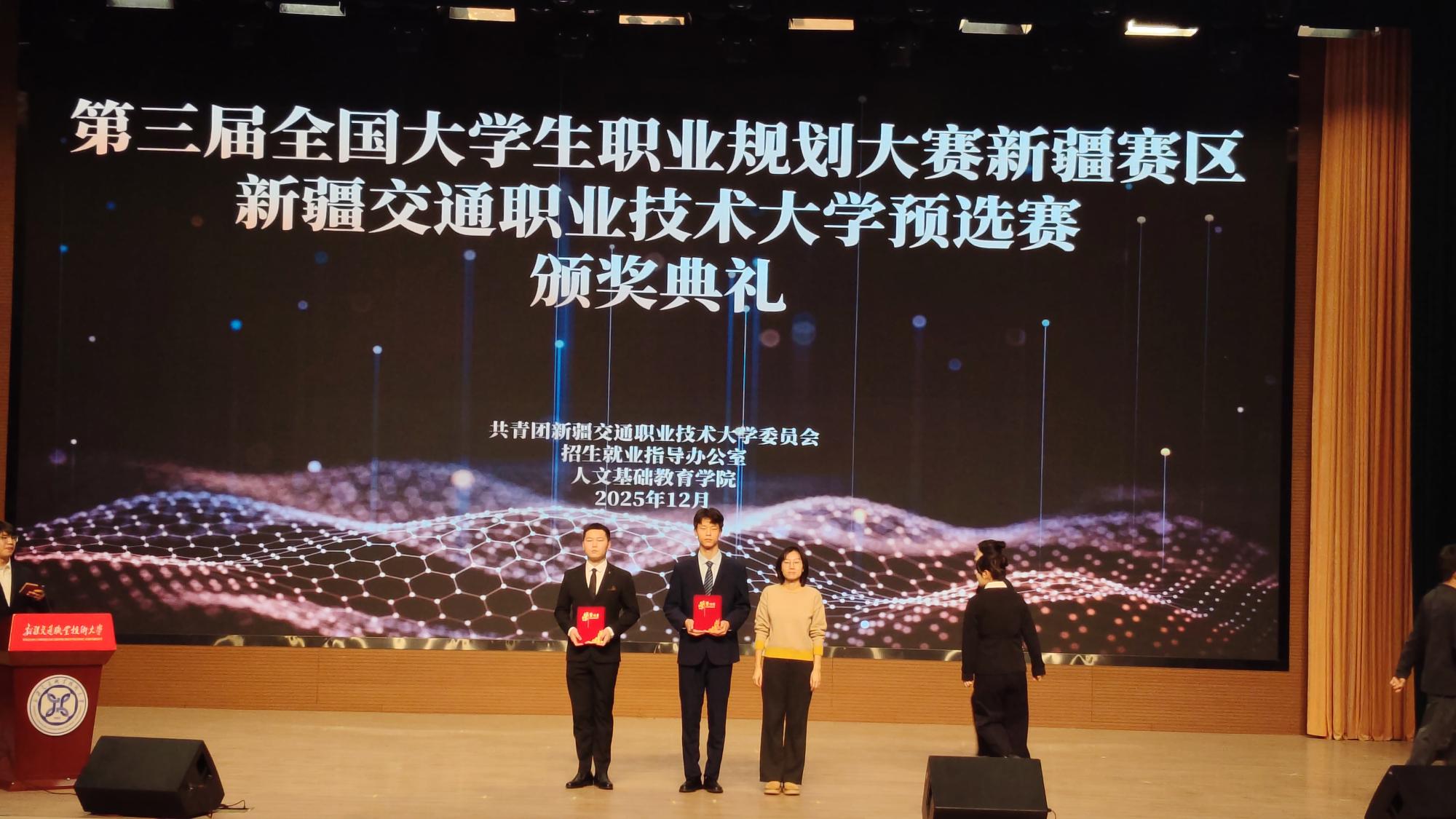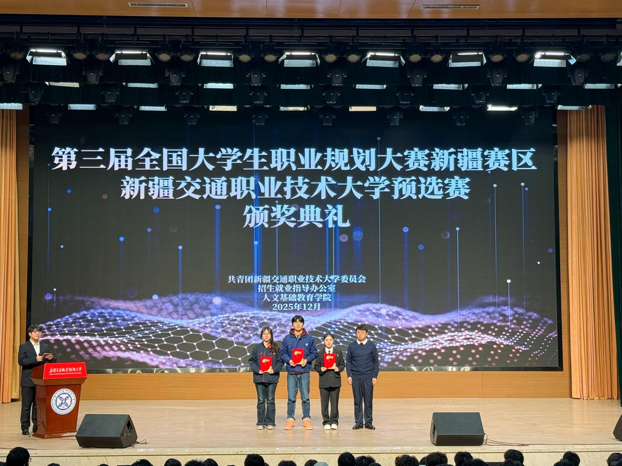 12月31日下午,第三届全国大学生职业规划大赛新疆赛区万象城体育awcsport预选赛在产教融合楼大礼堂举行。校党委副书记王瀚出席颁奖仪式并讲话。