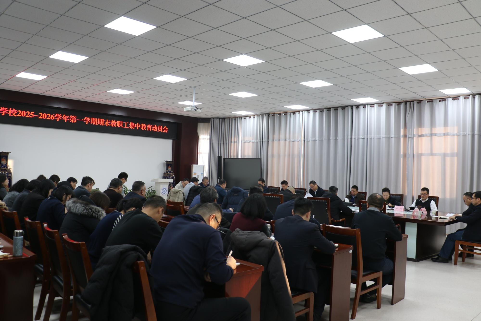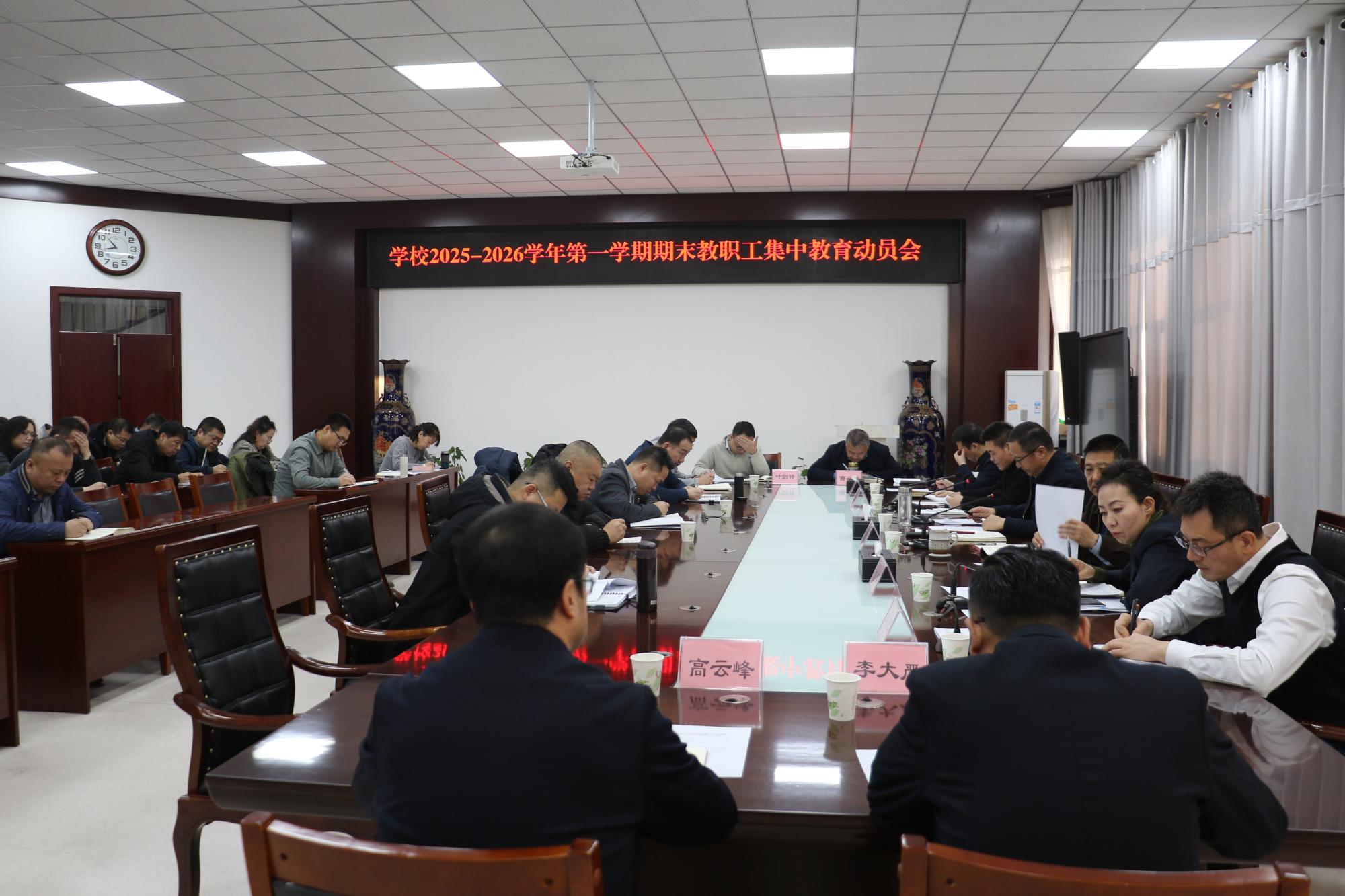 1月12日上午,学校召开2025-2026学年第一学期期末教职工集中教育动员大会。校党委书记刘洪波主持会议并作动员讲话。