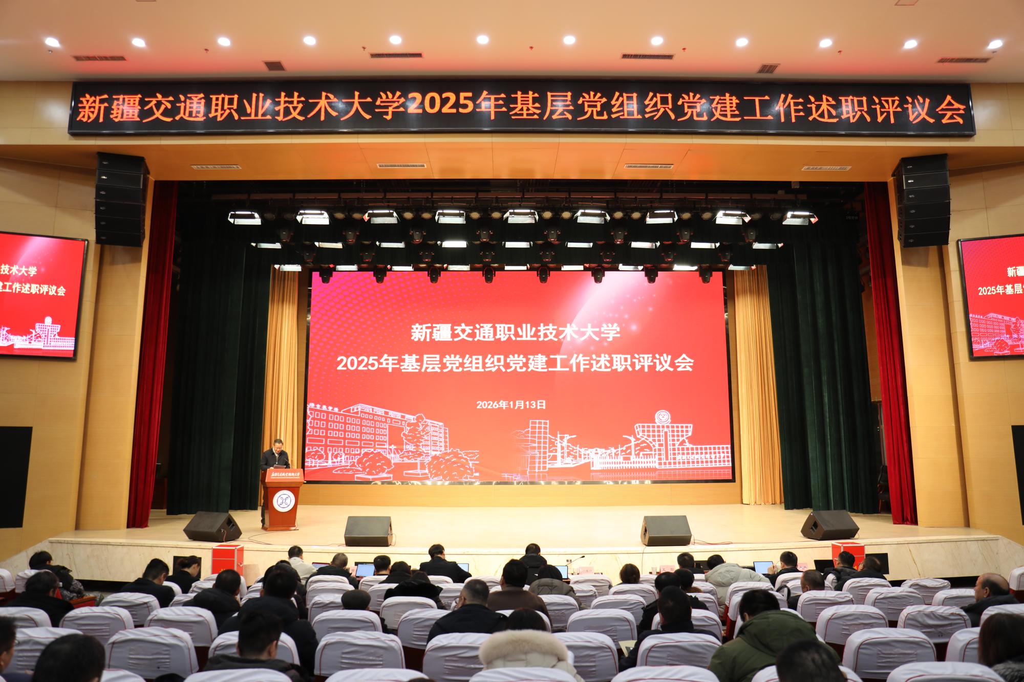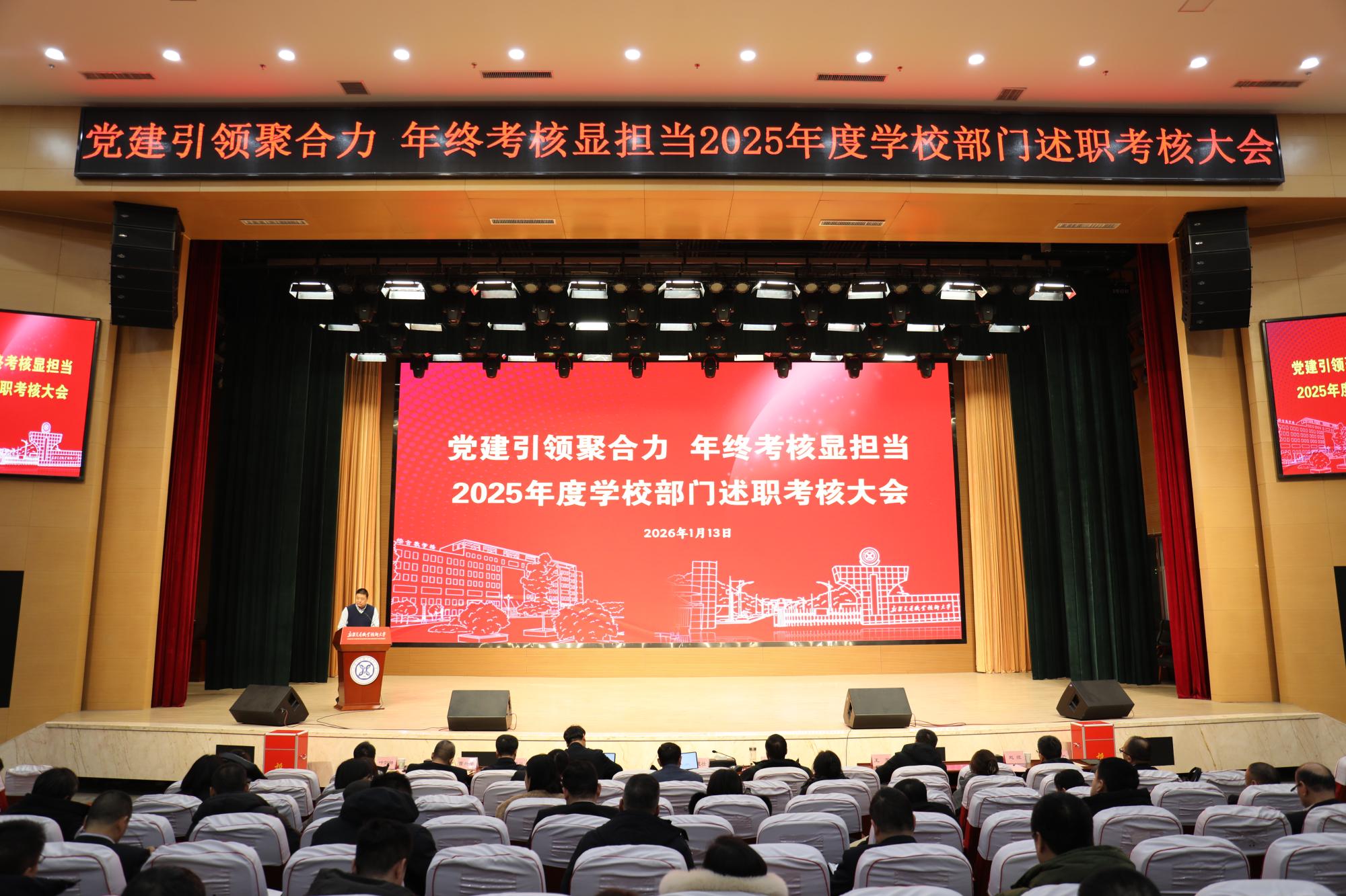 岁序更替,华章日新。为全面总结2025年奋斗足迹,系统检阅党建与业务融合发展成效,科学擘画2026年发展蓝图,1月13日,学校召开2025年度基层党组织书记抓党建工作述职评议会暨部门年度工作述职大会。校领导班子成员、全体中层干部、教职工代表齐聚一堂,以“述”明责、以“评”促改、以“干”图强,凝聚起推动职业本科教育高质量发展的磅礴力量。
