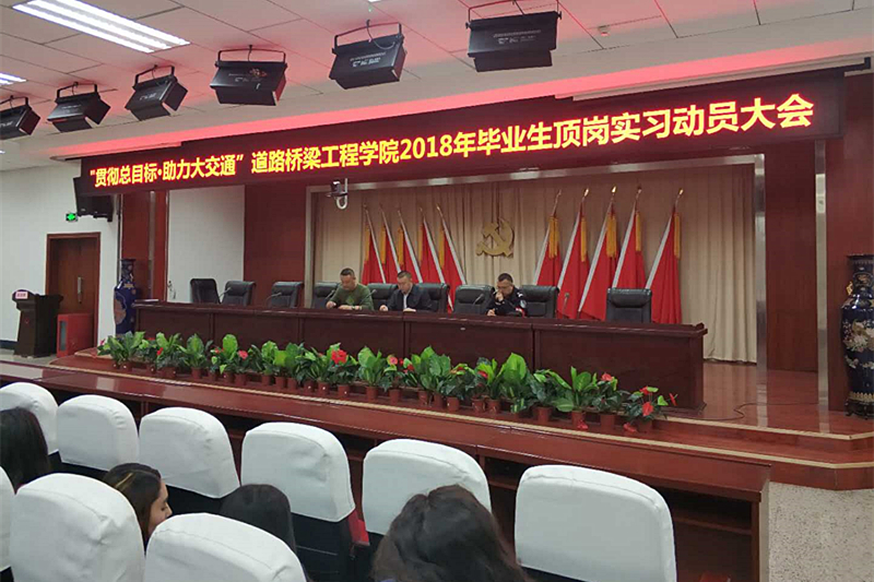 为扎实推进“教育惠民”“就业惠民”,3月12日道路桥梁工程学院在图书馆多功能厅召开了2018年毕业生顶岗实习动员大会。分院党总支书记李刚、党总支副书记吐依洪江·肉孜、就业专干关海涛、2018届部分班级612名学生及相关辅导员、班主任出席了会议。