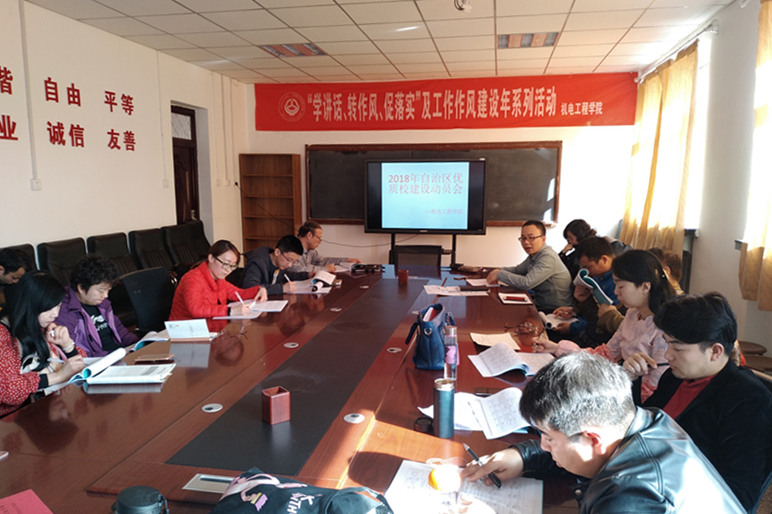 3月19日下午,机电工程学院在机电楼会议室召开了2018年自治区优质校建设推进会。机电工程学院党总支书记赛买提·艾力、副院长罗江红、路翀教授、杨永春教授等项目相关教师参会。会议由项目负责人、机电工程学院党总支副书记、副院长叶剑锋主持。
