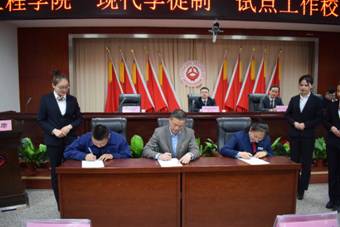 签约仪式由汽车工程学院院长侯晓民主持,新疆交通职业技术学院副院长戎成致欢迎词,戎成副院长与关博巍经理共同签定了《现代学徒制试点合作协议》,汽车工程学院院长侯晓民、企业代表新疆天汇笑好汽车销售有限公司人力行政经理丁晓红、学生代表史虎签订了《新疆交通职业技术学院汽车运用与维修技术专业现代学徒制三方协议书》,侯晓民院长向8位企业师傅颁发了学徒制师傅聘书。