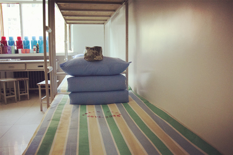 18级新生杨岩岗同学说:“被子从大面包变成了豆腐块,通过内务整理的学习,掌握了被子折叠的技巧,生活用品、鞋的规范摆放让我们的宿舍变得更加整洁,更喜欢这个家了!”