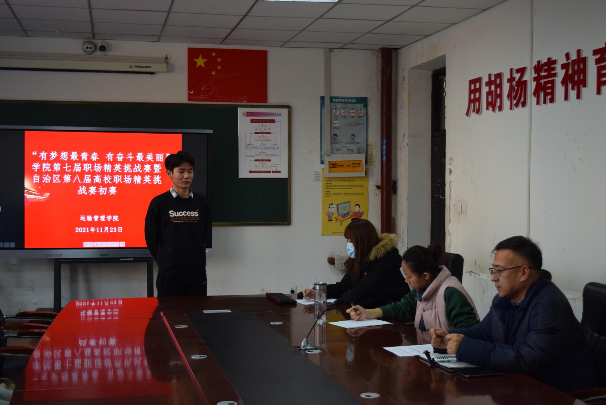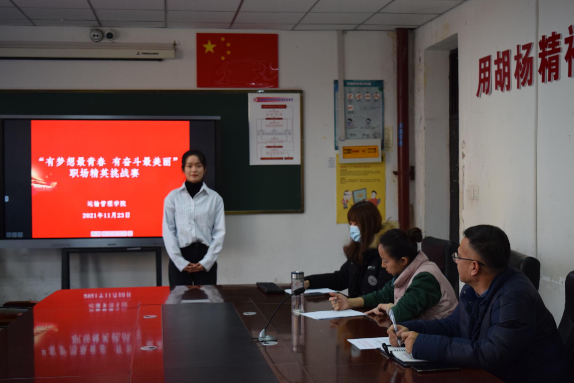 11月23日下午,运输管理学院“有梦想最青春 有奋斗最美丽”第七届职场精英挑战赛在3号教学楼202会议室举行。