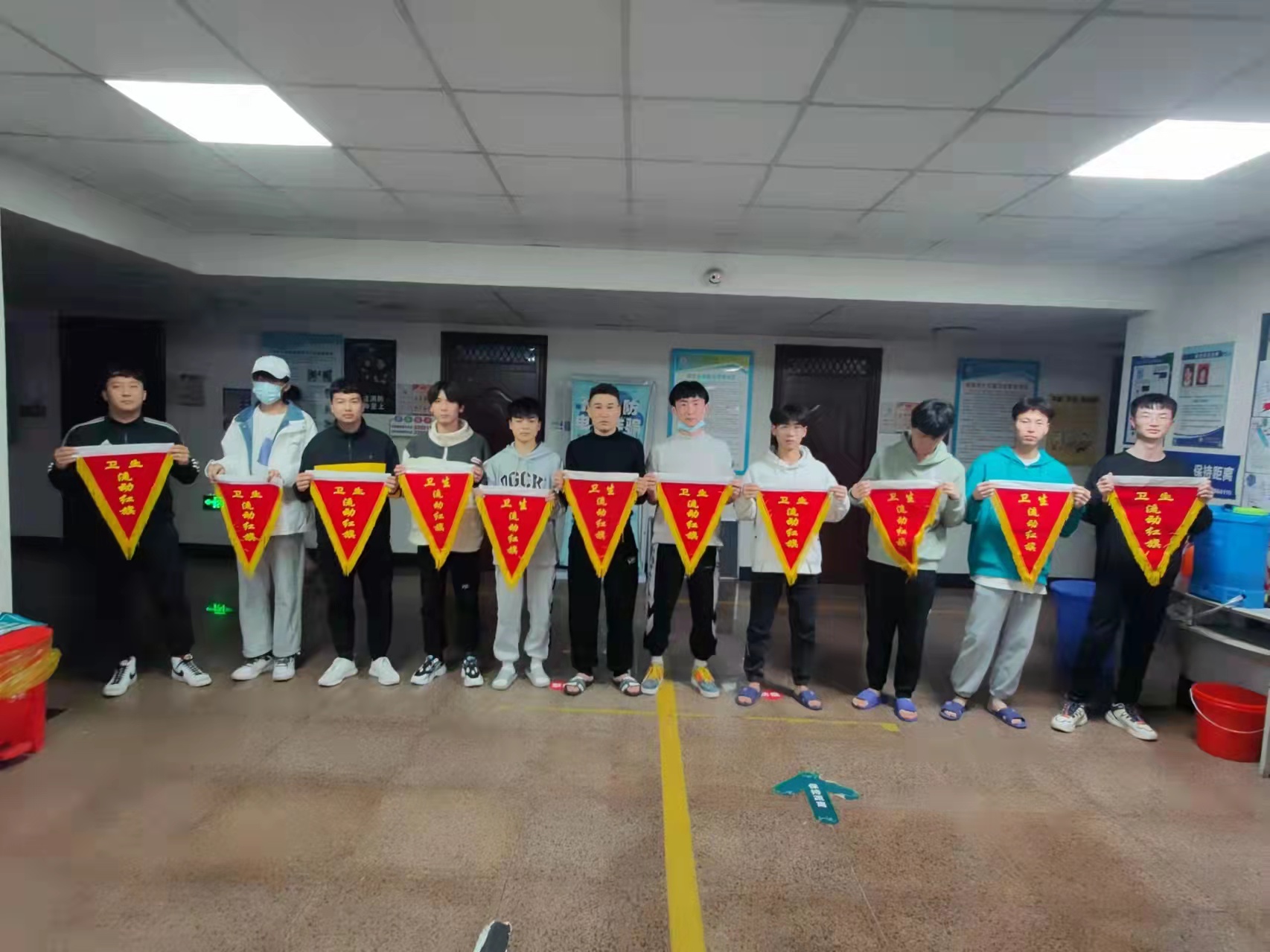 通过评比,最终测量D214、道桥D201、监理D203、测量D201、市政D205、监理D212、造价D212获得班级卫生流动红旗。同时,13号508等11个宿舍获得宿舍卫生流动红旗。