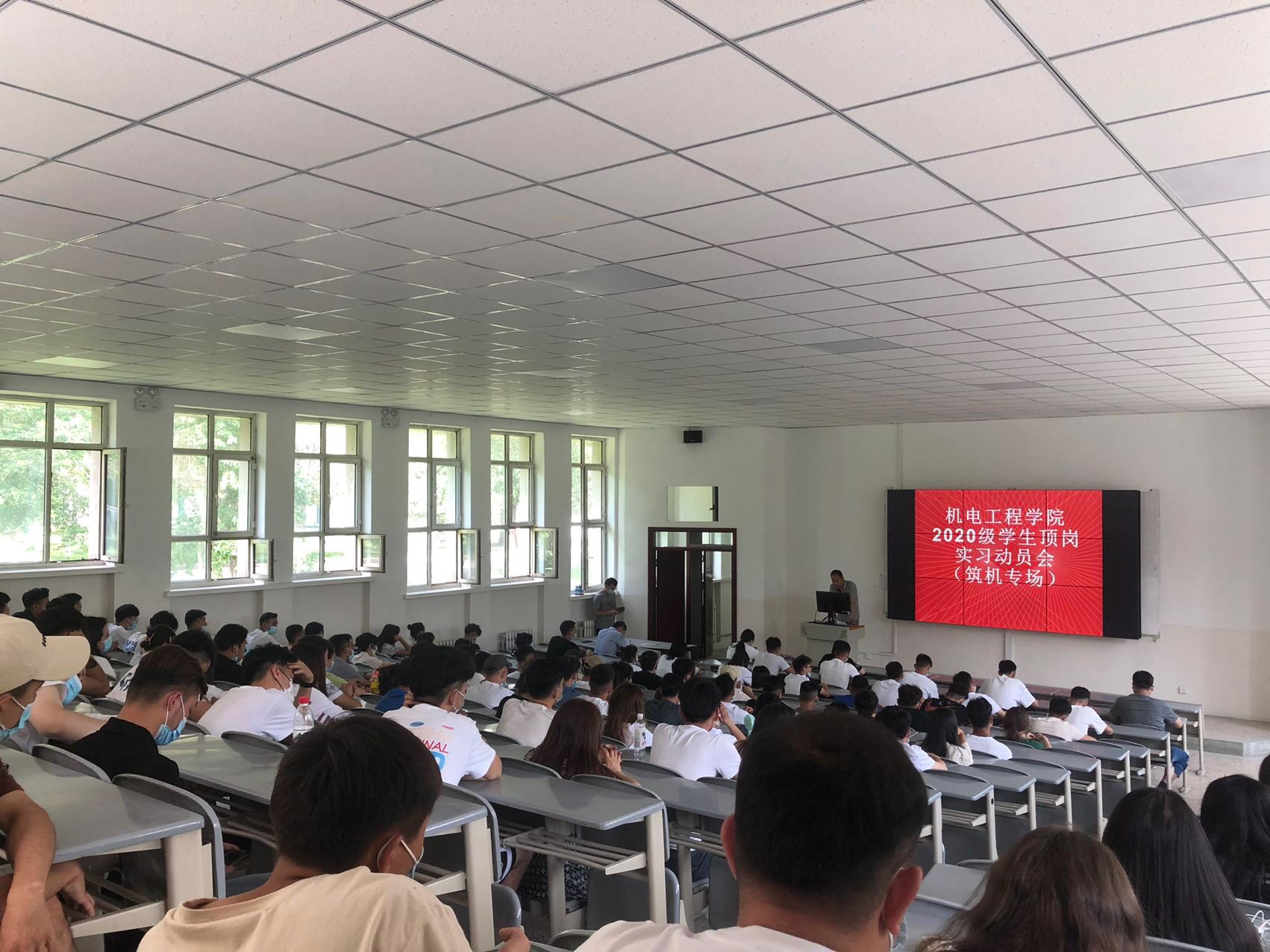 机电工程学院全体辅导员、专业负责人、班主任及2020级筑机专业顶岗实习学生300余人参会。