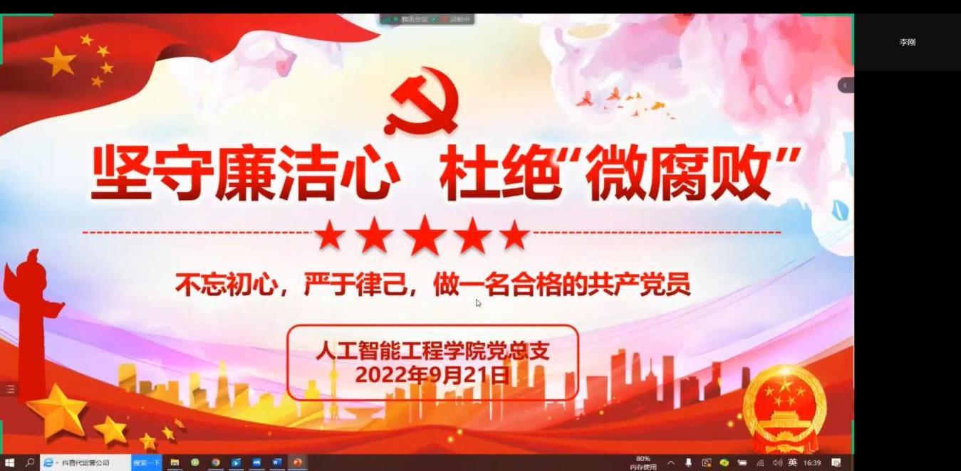 9月21日,人工智能工程学院党总支开展了“坚守廉洁 杜绝腐败”主题党风廉政线上专题教育学习。学院党委委员叶剑锋、分院全体教职工参加。