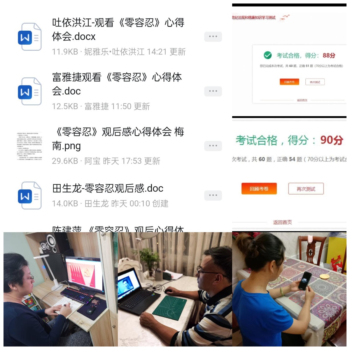 会后,大家撰写了观看警示教育片《零容忍》的心得体会,并在自治区纪委监委网站和“新疆纪检监察”公众号积极参加了党规党纪和宪法法律知识学习测试。