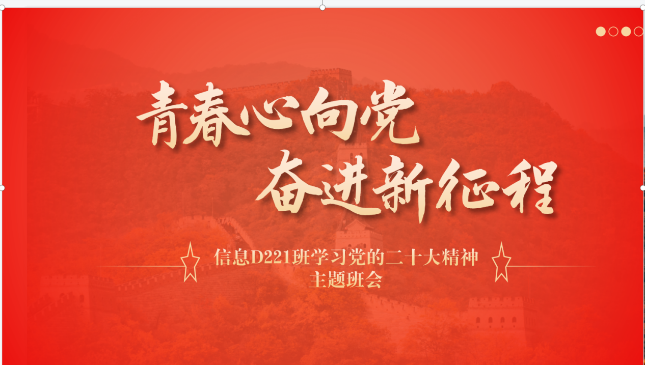 通过此次主题班会,信息D221全体同学表示,站在新的历史起点上,回望过去的历史性成就和历史性变革,眺望充满机遇和挑战的前进道路,我们壮志在胸、豪情满怀,踔厉奋发、团结奋斗,努力学习文化知识,学习习近平新时代中国特色社会主义思想,奋力实现中华民族伟大复兴的中国梦!