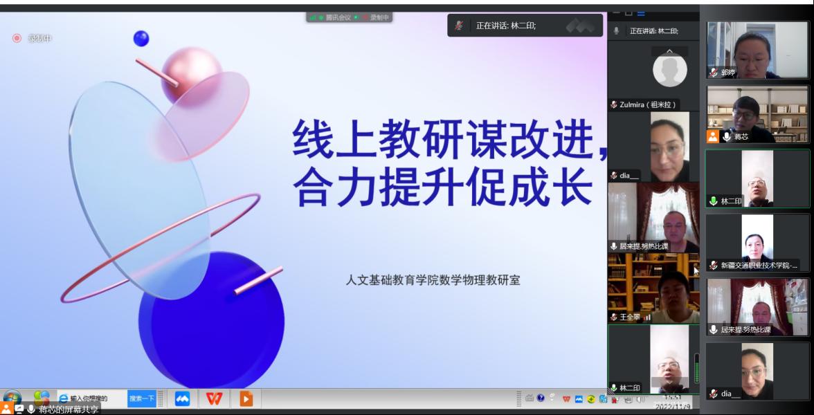 11月9日下午,人文基础教育学院数学物理教研室开展了“线上教研谋改进,合力提升促成长”主题教研会。