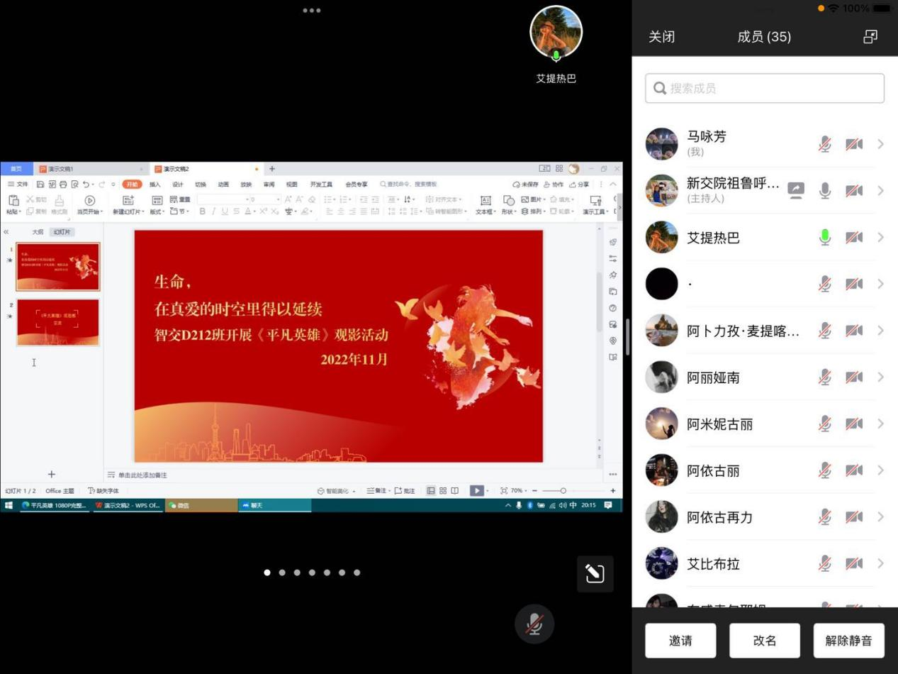 为深入学习贯彻党的二十大精神,进一步全面学习领会习近平新时代中国特色社会主义思想,提升辅导员育人能力,人工智能工程学院ICTS思政工作室于11月21日下午在线上组织主旋律电影观影活动,组织师生共同观看电影《平凡英雄》。