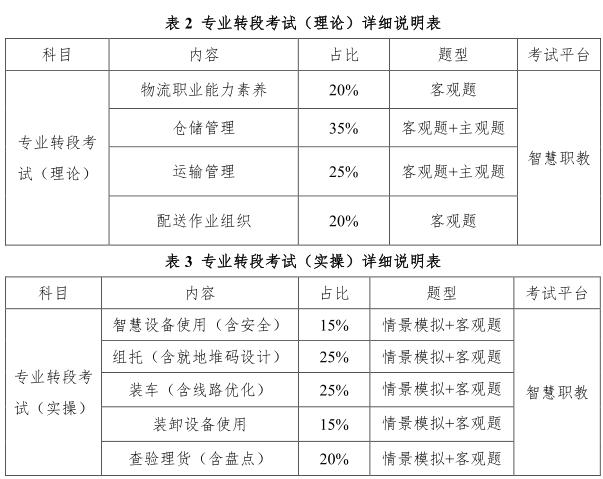 考试为线上进行,共分为两场,分别为专业转段理论考试和实操考试。其中,理论考试主要考核了学生物流职业能力素养、仓储管理、运输管理、配送作业的内容;实操考试以情景式模拟现场环境,涉及智慧设备使用、入库操作、货物装载、查验理货、盘点作业。
