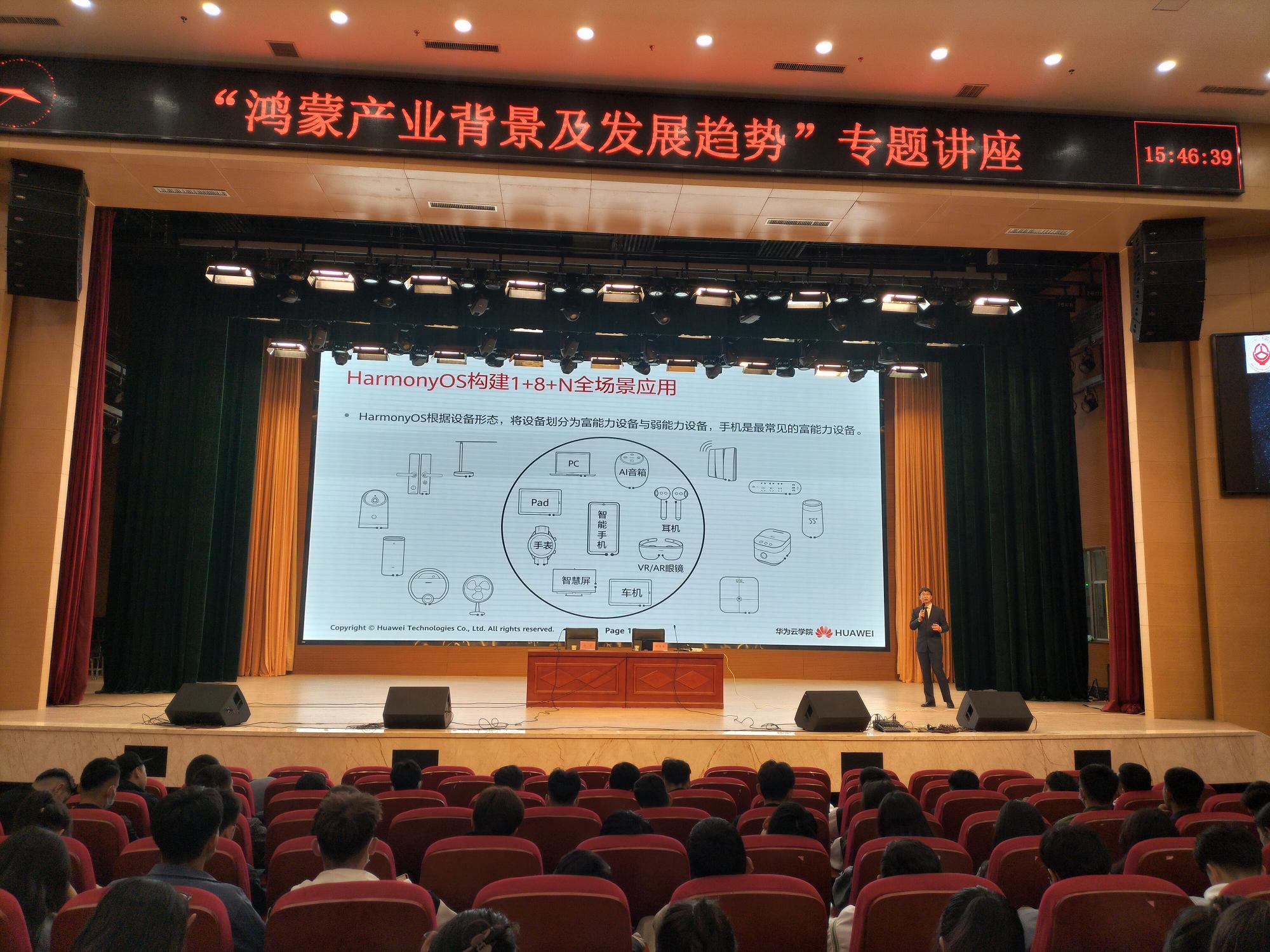4月10日下午,华为全球培训中心高级讲师周逸豪在学院大礼堂开展了题为《鸿蒙产业背景及发展趋势》的专题讲座,讲座由科研处处长徐丽主持。