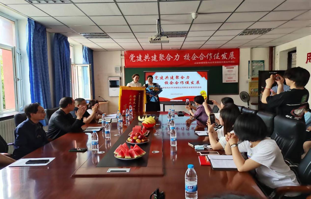 6月15日下午,运输管理学院党总支与太平洋保险公司北京路支公司共同开展“党建共建聚合力,校企合作促发展”主题校企党建联建共建活动。
