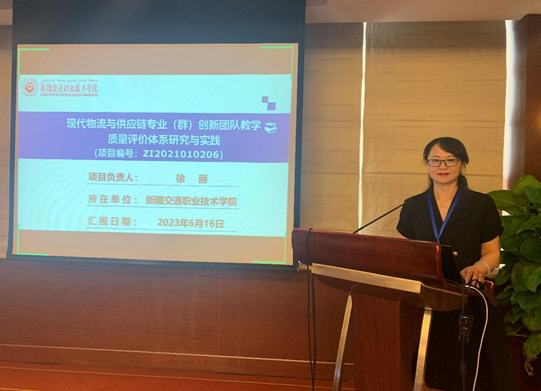 学院教师教学创新团队负责人徐丽代表团队汇报了子课题《现代物流与供应链专业(群)创新团队教学质量评价体系研究与实践》进展情况,存在的问题及下一步研究计划。