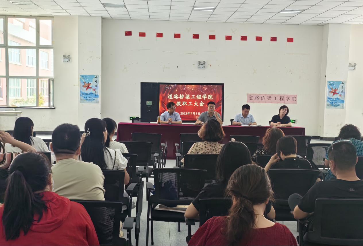 为深入贯彻习近平新时代中国特色社会主义思想,进一步提升道路桥梁工程学院教职工专业水平、综合素质和创新能力,加强分院教师队伍建设,7月7日道路桥梁工程学院开展2023年上半年教职工培训。本次培训由道路桥梁工程学院党总支书记樊梦兵主持。