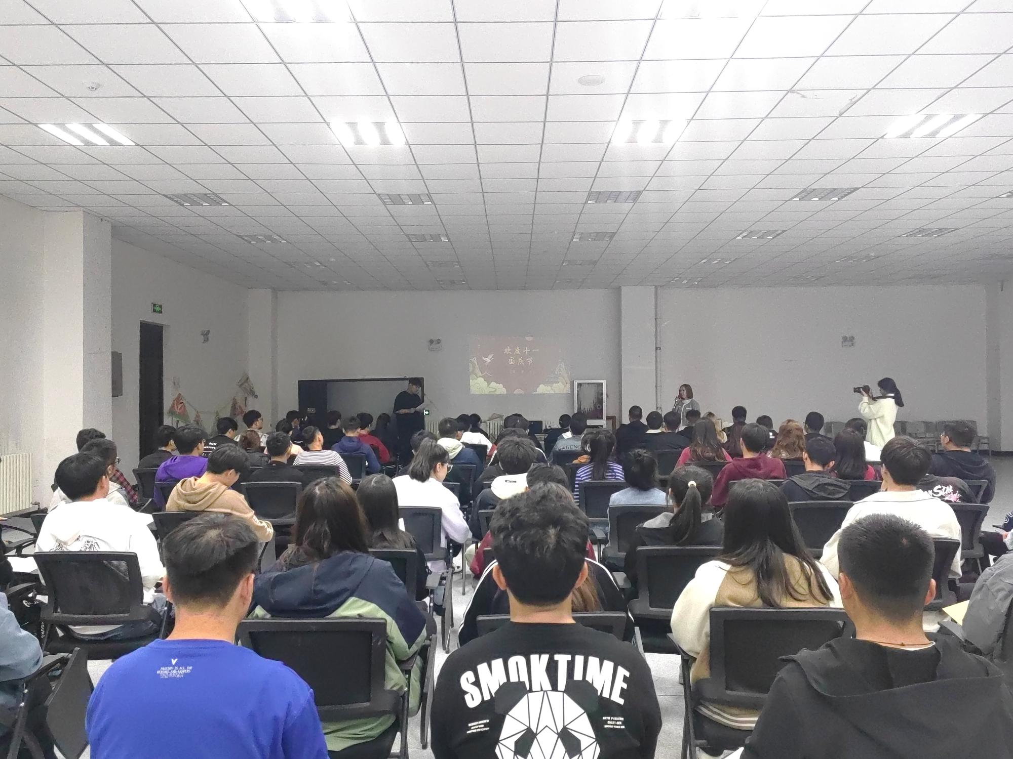 10月12日晚自习,道路桥梁工程学院国学社在土木楼二楼连廊开展“弘扬国学经典,树立家国情怀”社团活动,由社团指导老师曹静主讲。