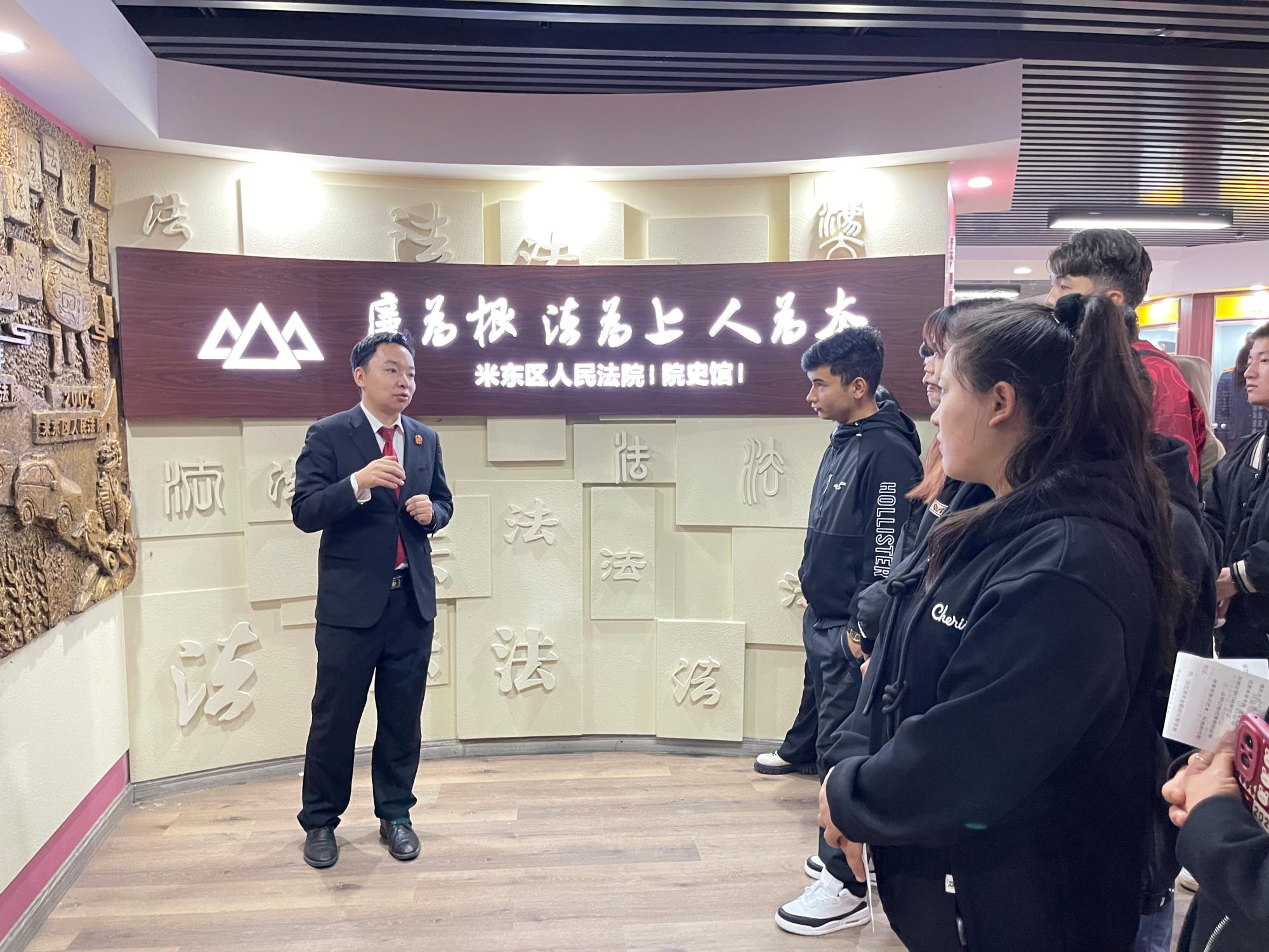 本次活动以组织同学们参加庭审旁听为主,让同学们直观地了解一场案件庭审活动的开展,近距离感受了审判的全过程,以案释法。开庭前,名班主任工作室负责人曹静老师为同学们讲解了一下法庭用具如法槌、法袍以及庭审的一般程序。同学们第一次面对面地接触法官、观摩庭审,上了一堂生动的、具体的、现实的法治教育课。旁听结束后,由米东区人民法院政治部四级法官助理赵祺带领同学们参观了院史馆。