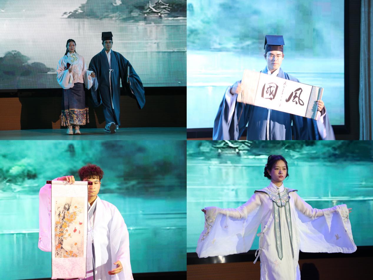 活动现场,教师队伍组建的乐队表演的《海阔天空》《红日》点燃全场气氛,为本次文艺汇演拉开了序幕。大学生艺术团的同学们带来了民族舞《新疆山水美》带领大家感受不同民族文化的魅力;中国传统服饰展示、民族舞蹈、诗朗诵、乐器弹唱等各具特色的节目为联谊活动增添了亮丽的色彩。师生共同参与的民族团结相关知识问答环节,将现场气氛推向高潮。最后,分院师生共同合唱一首《国家》,唱出强国有我的使命担当,为晚会划上圆满句号。