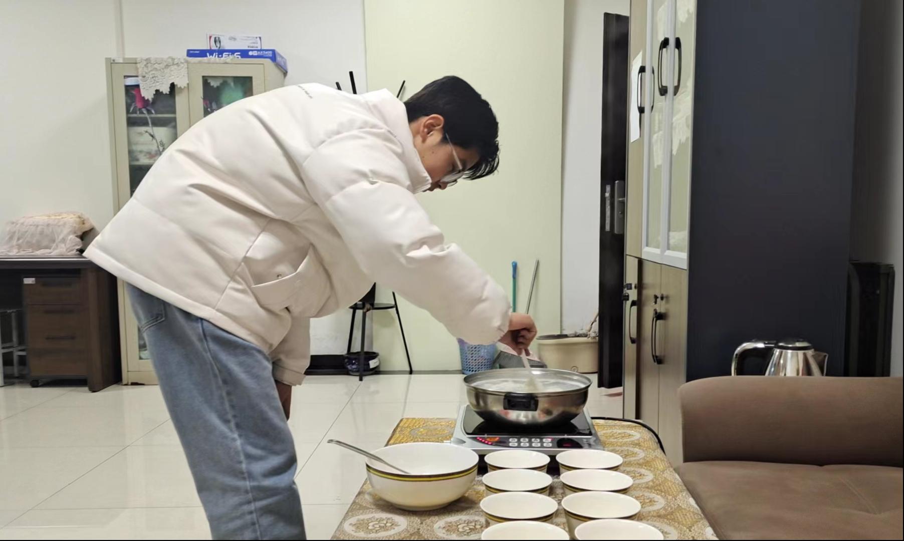 活动伊始,社团指导教师赵晓雪先为大家讲解了冬至的来历及文化内涵,随后同学们纷纷参与到体验活动中,有的煮汤圆、有的烹红茶,随着汤圆的热气与红茶茶香在空气中渐渐蔓延开来,阵阵温馨洋溢在每一位同学的心里,为深冬时刻带来无尽温暖与浓情。大家边吃边谈,结合自己的经历讲述了冬至各地风俗活动,在热闹的气氛中感受着劳动带来的快乐。