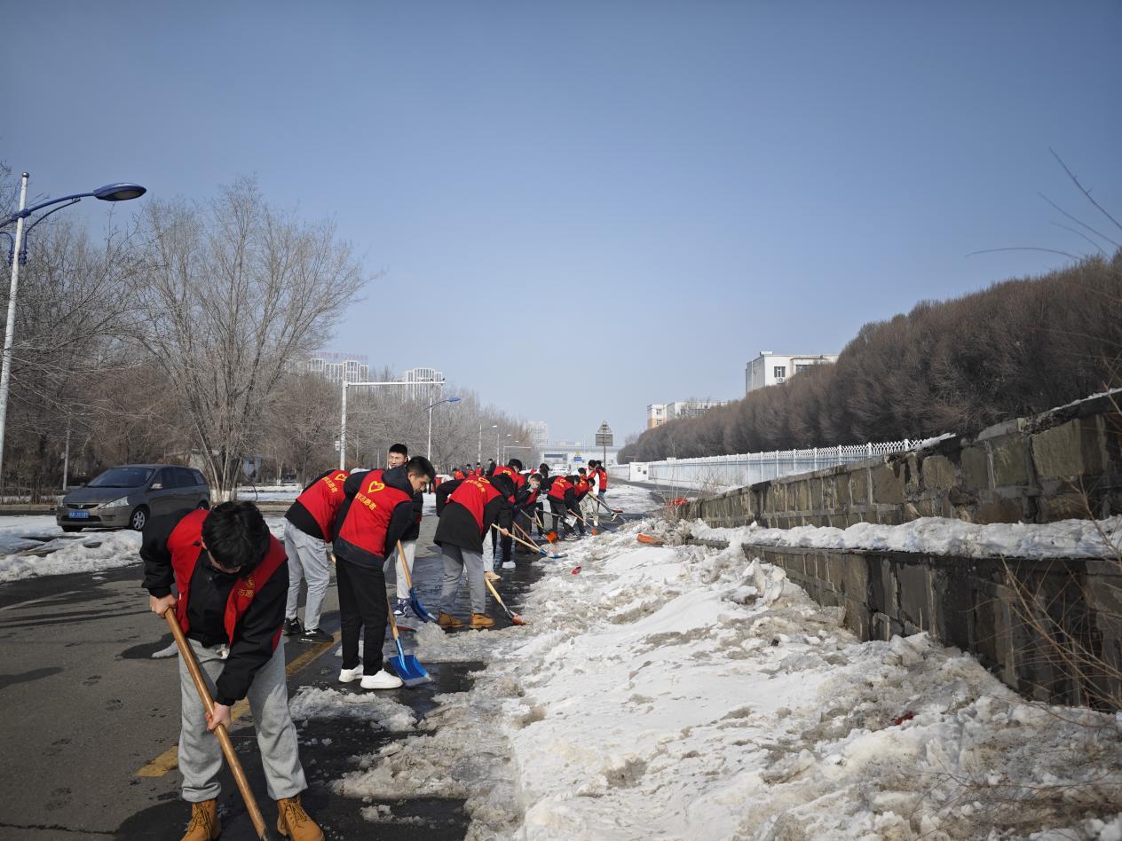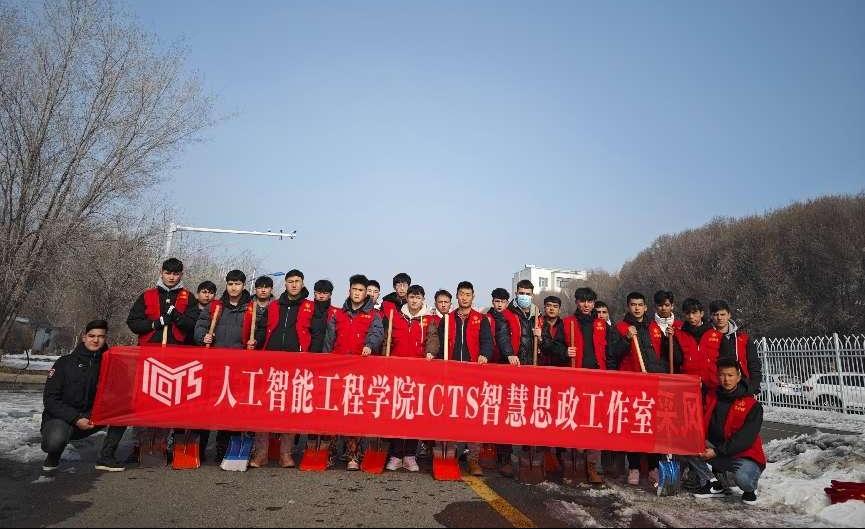 3月5日下午,在第61个学雷锋纪念日到来之际,人工智能工程学院ICTS智慧思政工作室联合学工党支部前往学院驾训部开展清扫积雪学雷锋志愿服务活动。