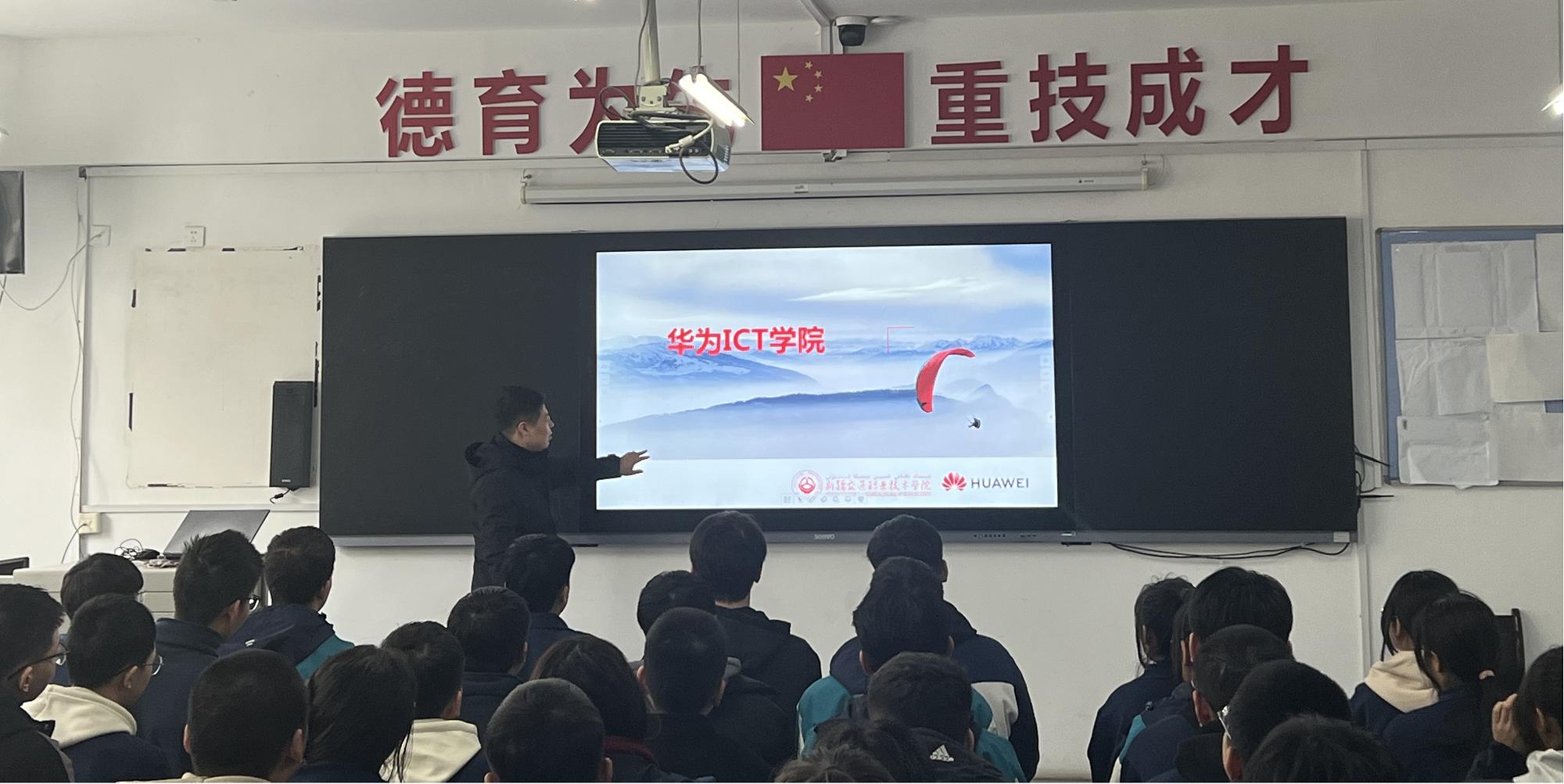 3月6日下午,学院华为ICT学院前往新疆供销技师学院、新疆工业经济学校开展2024年招生宣讲会。此次宣讲团队由人工智能工程学院院长尉辉、华为ICT学院运营经理赵小龙、专业负责人葛斌老师组成。