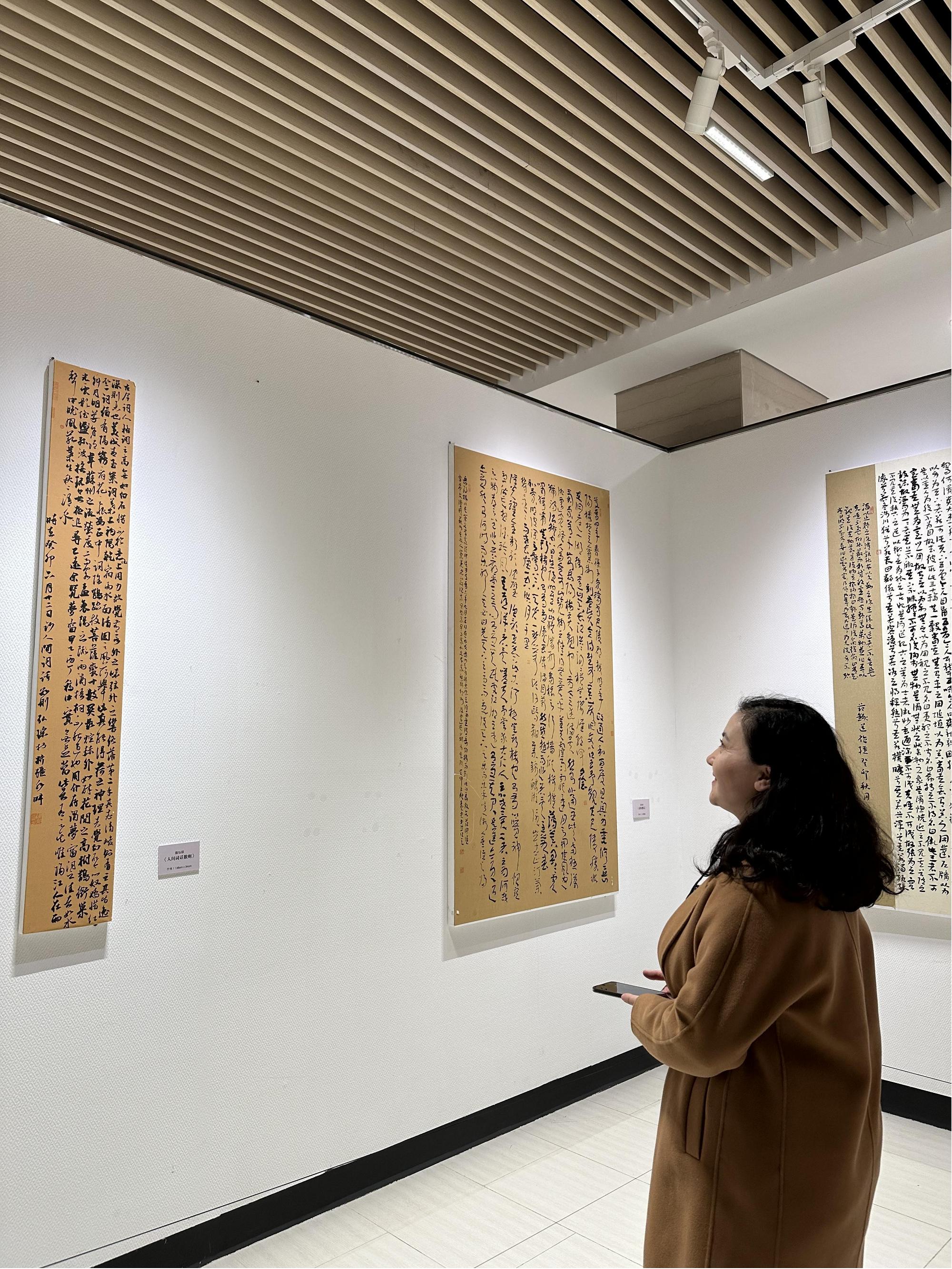 活动现场,全体师生认真参观了新疆第六届书法篆刻展“回归原点——中国当代国画名家经典作品摹写展”“黄胄在新疆——新疆美术馆黄胄作品《庆丰收》珍藏展”“壁上壁下——龟兹石窟艺术的因缘与回响”“耕耘·奉献——新疆美术馆馆藏作品展”等五个主题展。在欣赏水墨画、油画、壁画、素描、书法、工艺品等不同艺术形式的过程中,师生们感受到名家作品带来的视觉冲击,体会着作品带给心灵的碰撞。在观展过程中,大家认真学习、仔细体会作品的意境,相互讨论,交流感想,对展出的作品赞叹不已,在切身感受艺术熏陶的同时,更深层次地体会到我国历史的悠久和文化积淀的深厚,更加坚定了为民族复兴而努力奋斗的信心和决心。