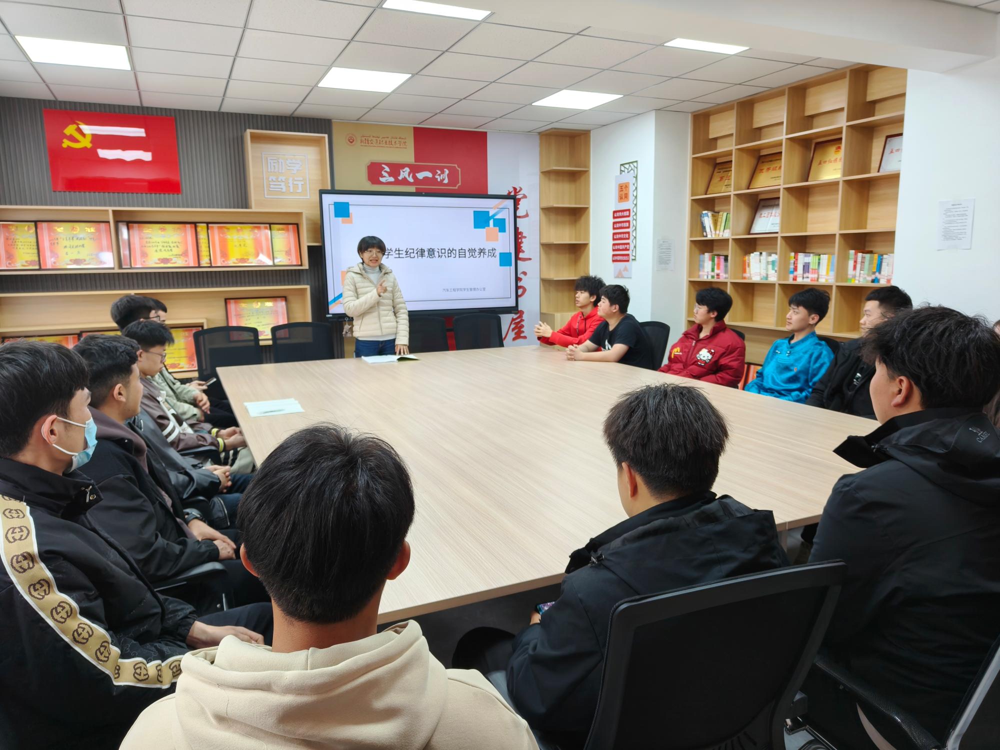 3月20日下午,汽车工程学院面向2023级学生干部在12号公寓“一站式”学生社区的红色书屋开展了“大学生纪律意识的自觉养成”专题讲座,由政治辅导员杨莉主讲。