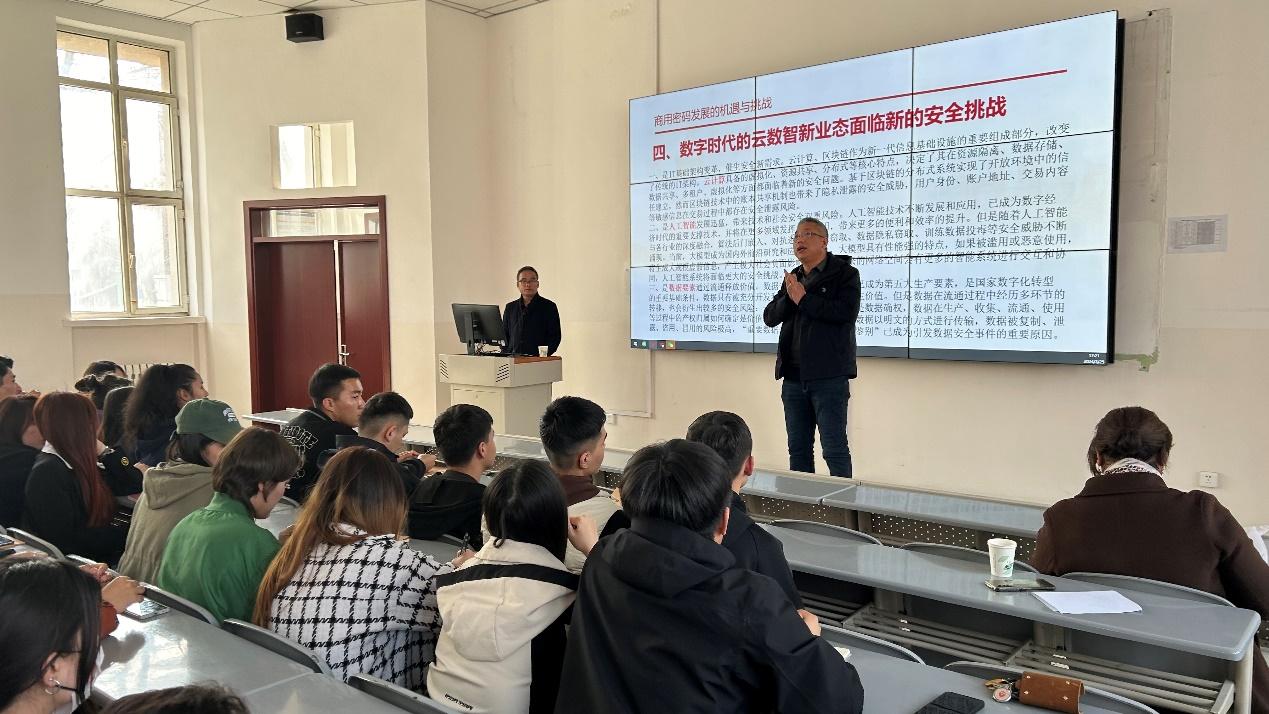 讲座由人工智能工程学院产业导师秦文峰主讲,秦文峰任职于新疆数字证书认证中心,是二级国家职业经理人、高级信息网络安全师、区跨链及数字化转型高级工程师、自治区商密协会会员。