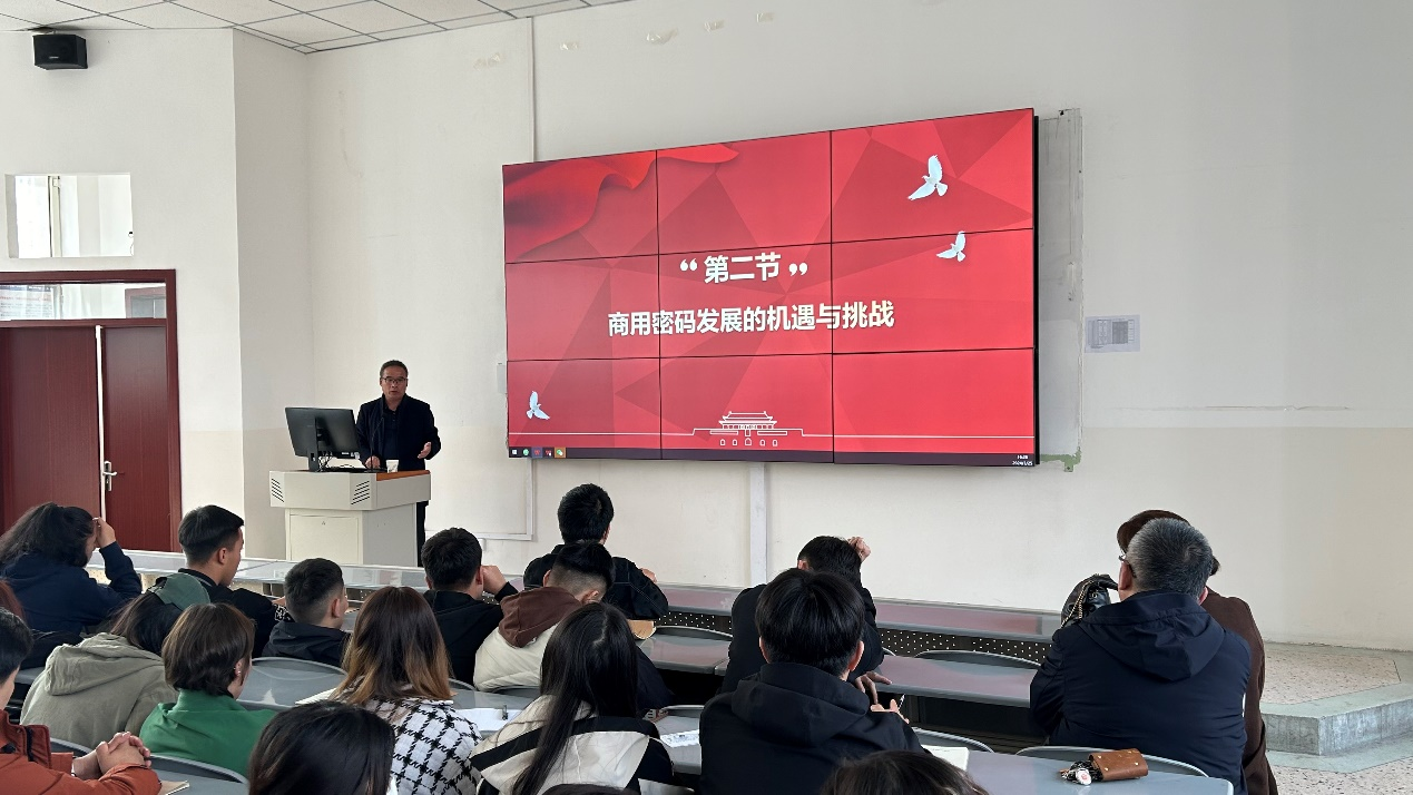 秦文峰从全球视角出发,分析了当前商用密码技术的发展背景,他指出随着数字经济的蓬勃发展,商用密码已成为保护网络安全、维护国家安全和促进经济发展的重要工具。他表示,随着人工智能、大数据、云计算等新技术的应用,商用密码面临着前所未有的挑战和机遇,随着量子计算等新技术的发展,传统的密码体系将面临重大挑战,而量子密码学、人工智能等新兴技术将成为研究的热点。他鼓励学生们积极关注这些前沿技术,为我国的商用密码研究和应用贡献力量。