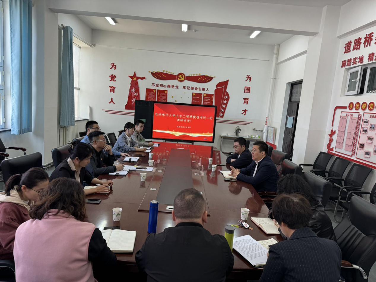 4月22日,喀什大学土木工程学院党委书记杨江平、给排水科学与工程专业教研室主任宫厚杰2人来我院开展本科“4+0”专业调研交流。道路桥梁工程学院党总支书记樊梦兵、院长曹永鹏及相关处室负责人参加会议。